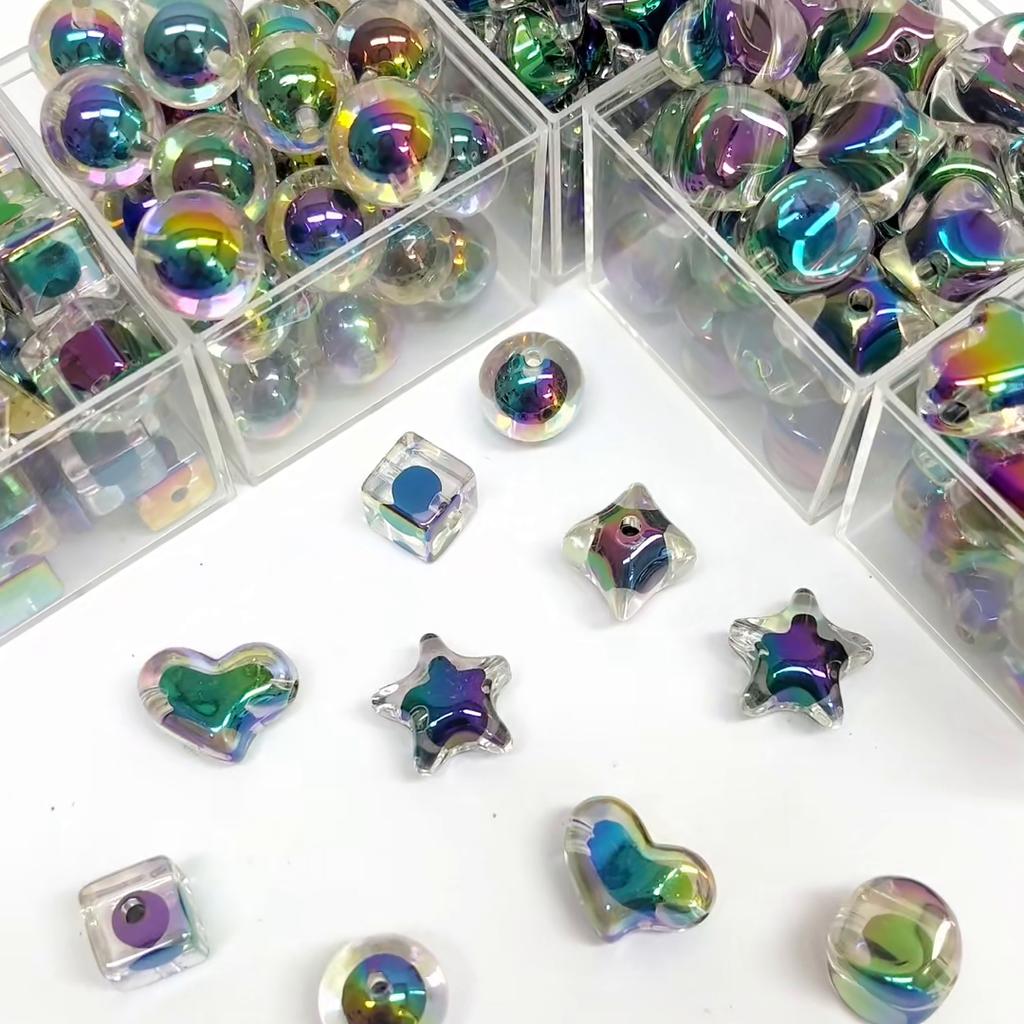 Прозрачные черные бусины с покрытием, разноцветные средние разделители для изготовления ожерелий и браслетов своими руками