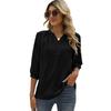 Весенне-летняя женская футболка с воротником-стойкой, рубашка со средними рукавами, жаккардовая повседневная блузка с комочком волос, свободный топ, рубашка