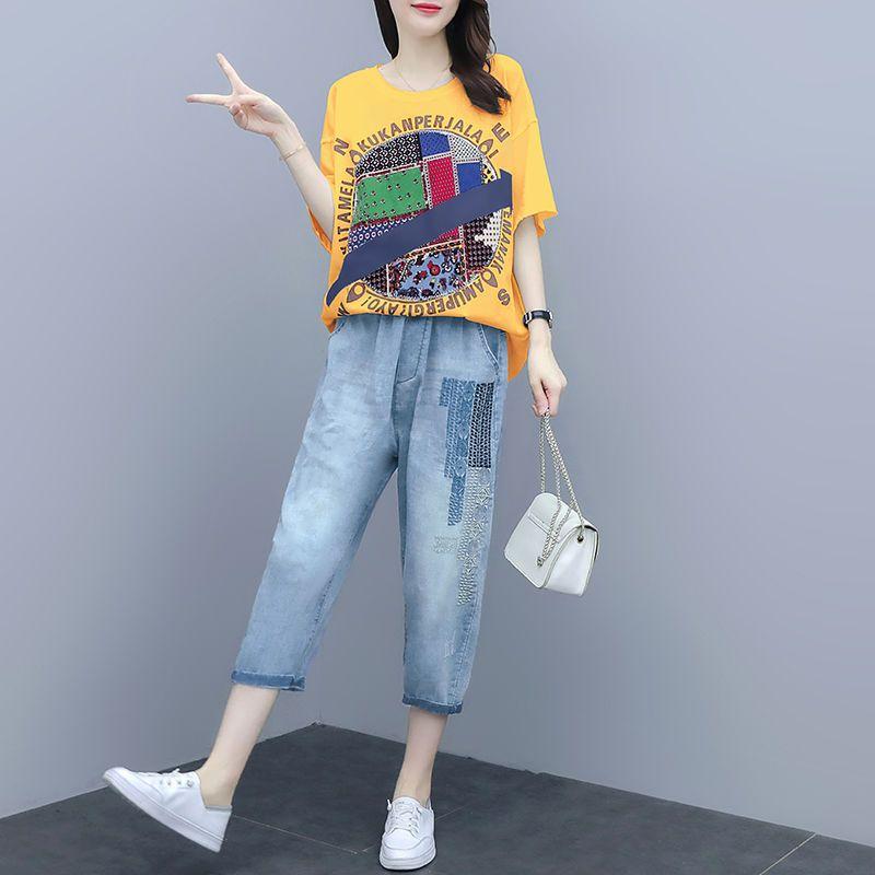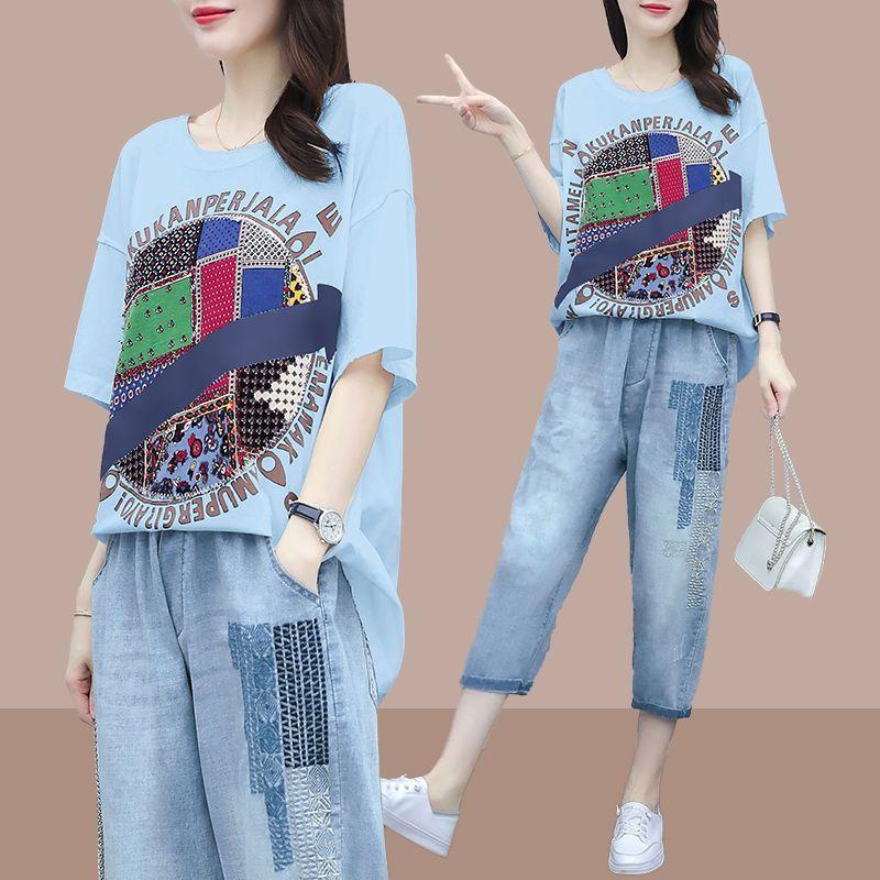 Новое поступление, летний модный стильный женский свободный костюм больших размеров с лоскутной вышивкой, комплект из одного/двух предметов