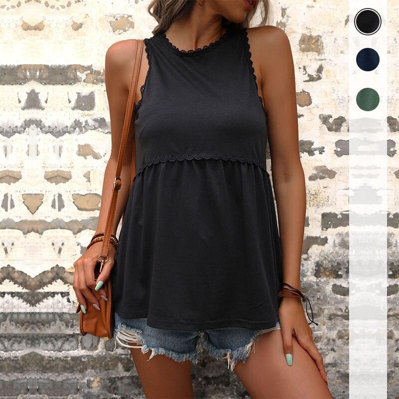 2023 Модная летняя женская блузка без рукавов с оборками, повседневная свободная рубашка, однотонные сексуальные топы, элегантный стильный жилет, блузки 26316