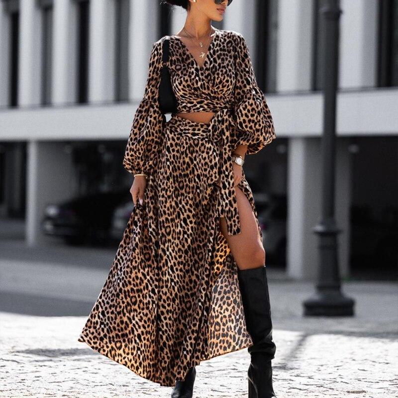 Модное женское длинное платье с цветочным принтом и рукавами-фонариками, повседневное платье с v-образным вырезом и высокой талией, женское винтажное свободное платье с леопардовым принтом 26347 — купить товар онлайн с бесплатной доставкой по всему миру!