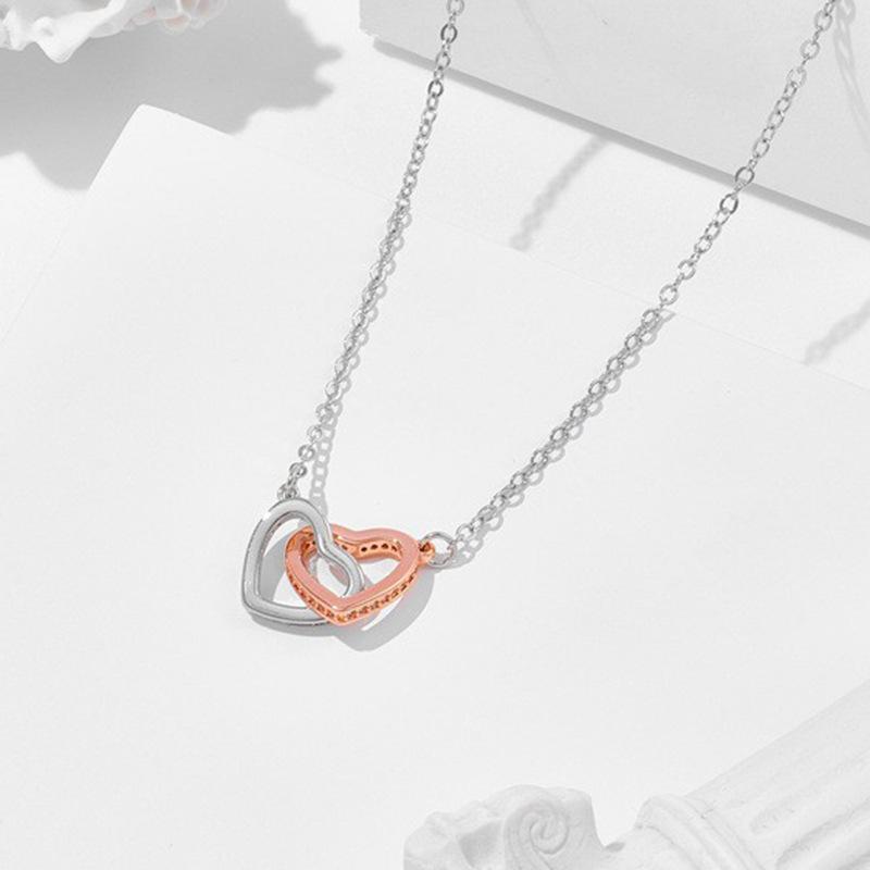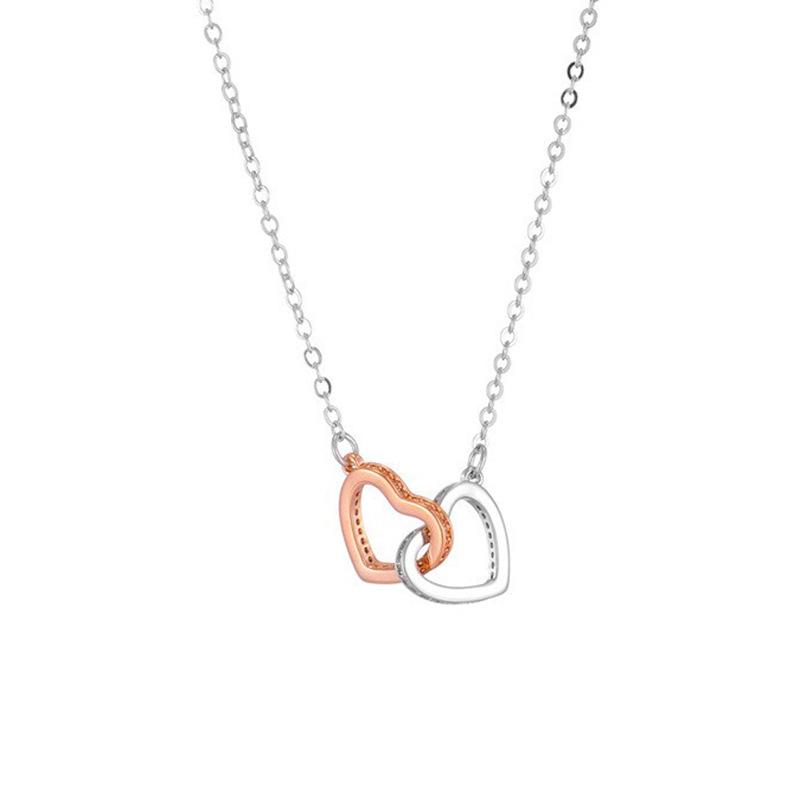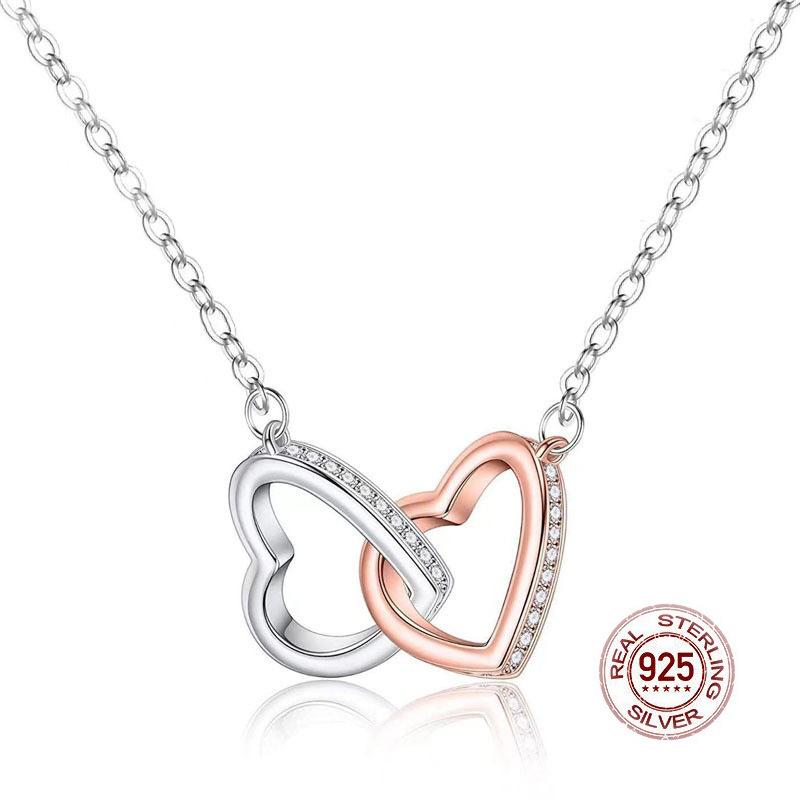 Серебряные ювелирные изделия, взорванная трансграничная любовь, двойное сердце, двойное цветное кольцо, ожерелье-цепочка, европейская и американская мода, простые ошейники