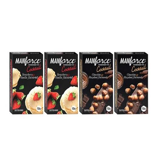 Комбинированная упаковка презервативов Manforce Cocktail с точечными кольцами (Клубника+ваниль и шоколад+фундук)- 10 кусочков (Пакет из 4)