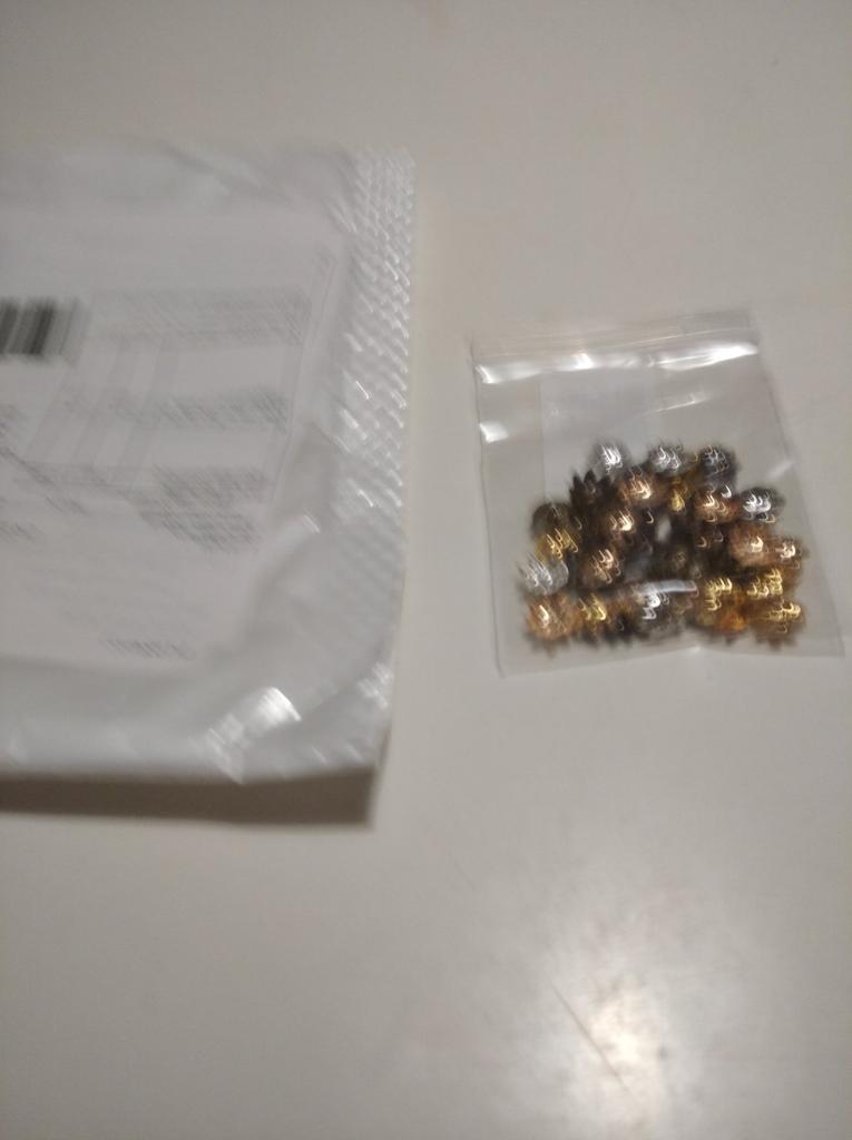 Посылка шла в Беларусь меньше месяца. Отслеживалась. Получала на почте. Товар был упакован в зип-пакет и пупырчатый пакет. Колпачки очень красивые и аккуратные! Вместо заявленных 100 штук продавец положил 101 штуку! Спасибо огромное продавцу и Джуму!