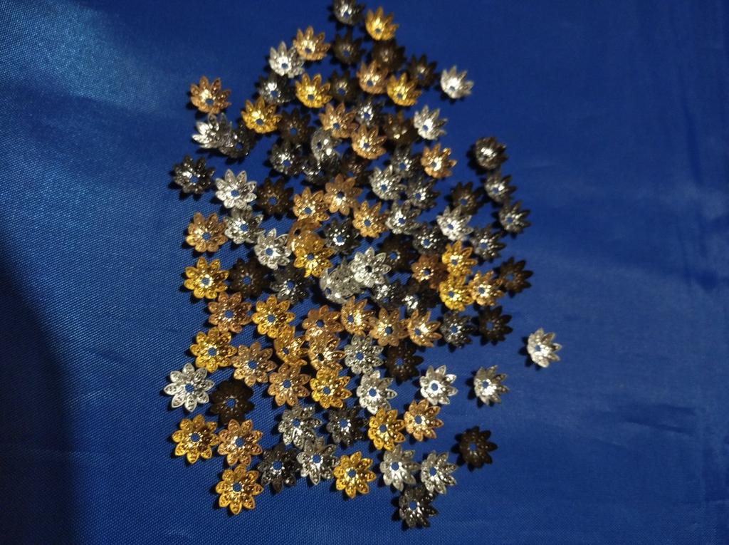 Металлический цветок лотоса для изделий. Взяла себе для рукоделия. В наборе 100 шт. 8мм. Товар отличный. Я заказала микс цветной. Размер пришёл тот что и заказала. Беру для браслетов, ожерелья, подвески. В наших магазинах в разы дороже. В использовании все идеально. Хорошо вписываются в общую картину изделия. Отлично сочетаются с большими бусинами. Не теряют свой цвет и форму при ежедневном ношении изделия. Не загибаются и идеально держат изделия ручной работы. Плюсы: Качество. Количество. Цена. Минусы: Для меня их нет. Товаром довольна.💙 Доставка до Николаева полтора месяца ✈️
