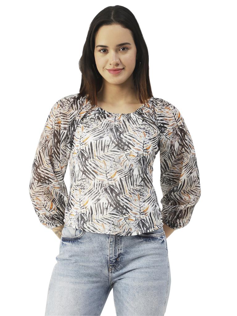 Moomaya Принтованный топ с круглым вырезом, прозрачный топ с длинным рукавом для женщин