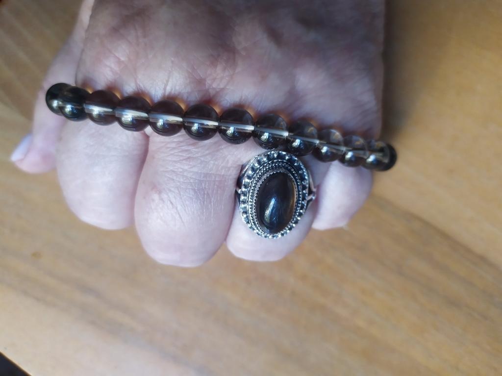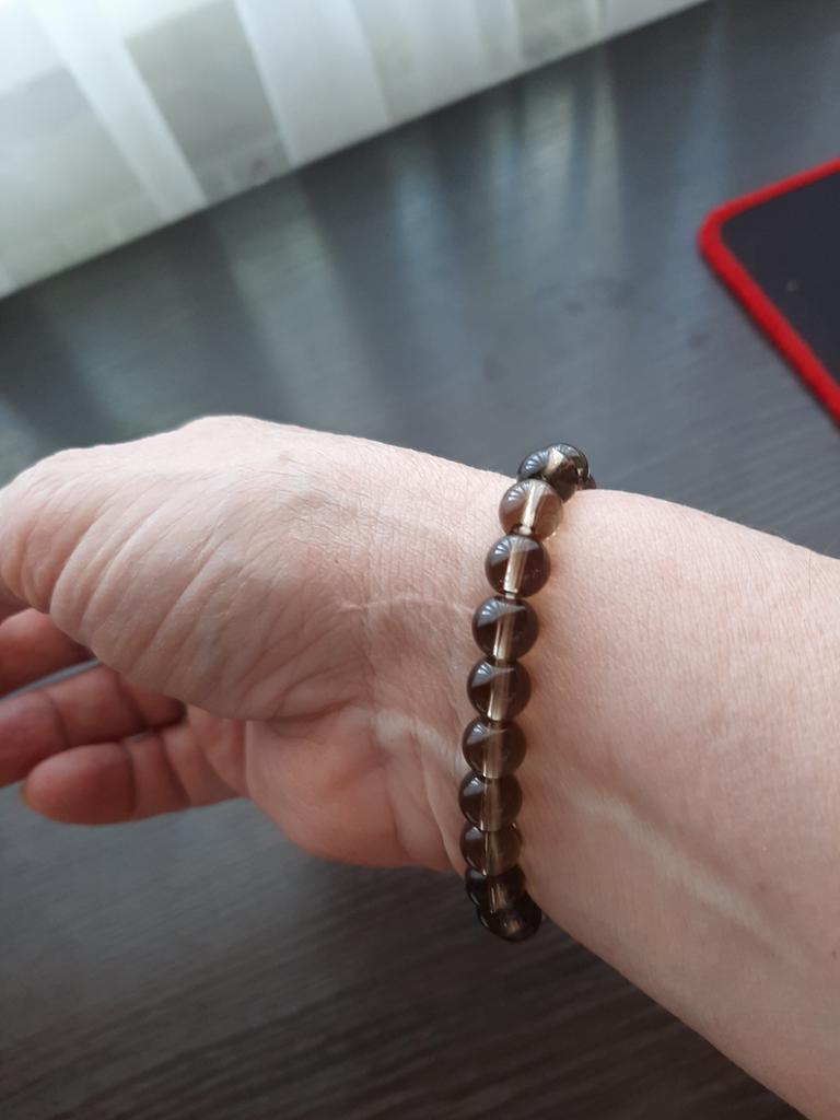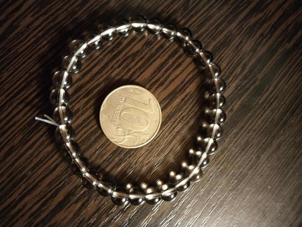 Браслет понравился, красивый, цвет дымчатый, благородный. Спасибо Джум за доставку, спасибо продавцу за красивое изделие. Из бусин 10 мм и купленного браслета 8 мм , переделанного мной , получился получился красивый комплект.