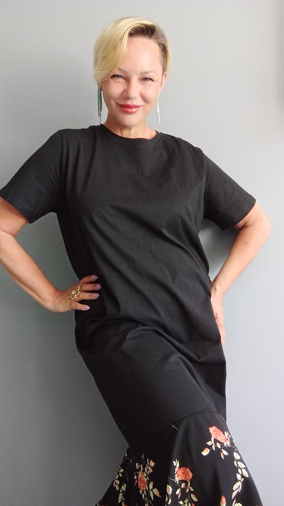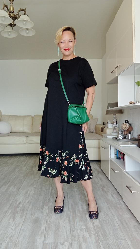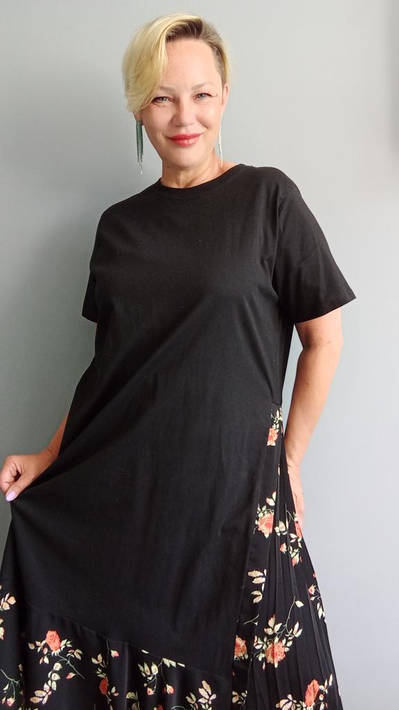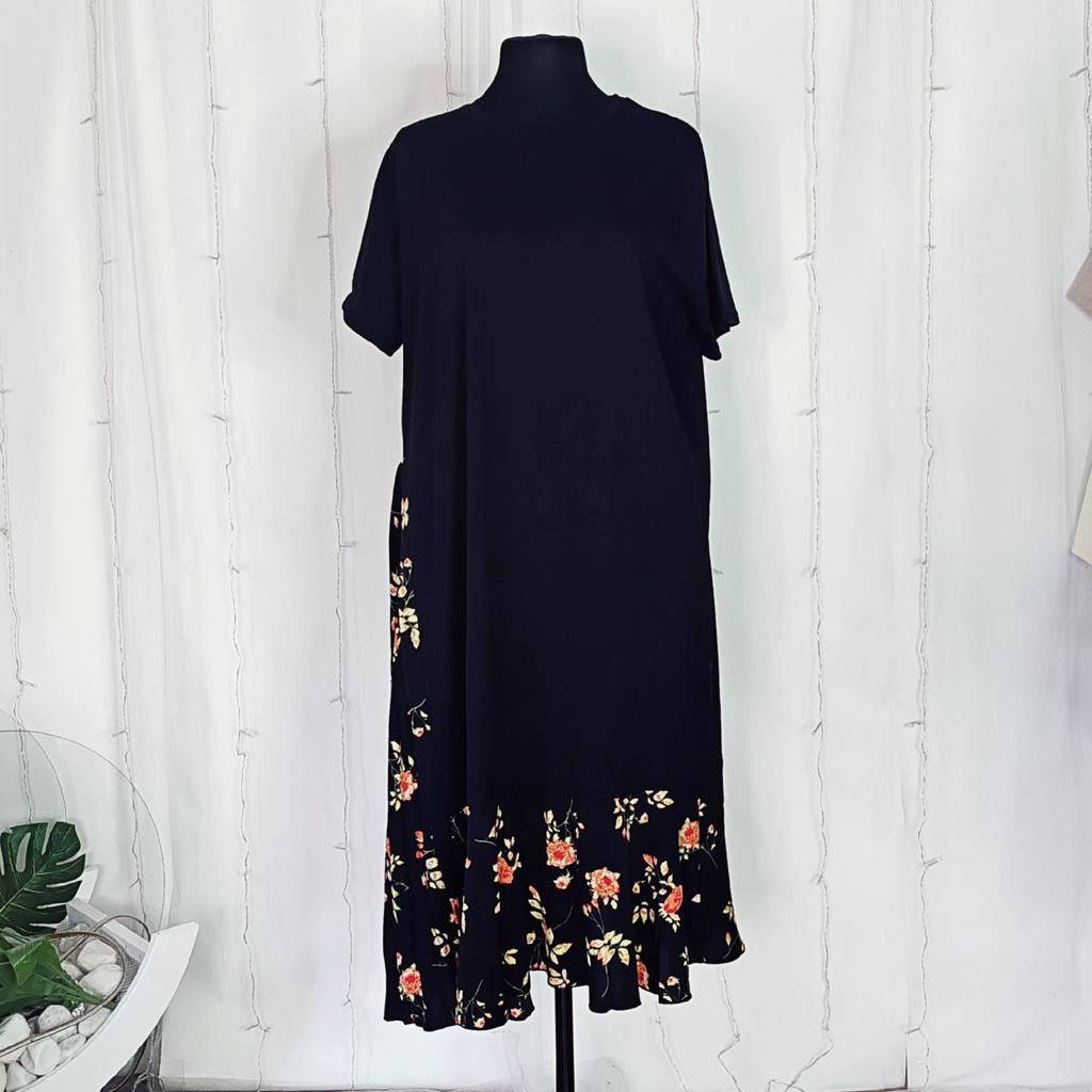 Платье в свободном стиле с цветочками 🥰 Привет! Такие платья всегда выйгрышно сидят на фигуре, они свободные, лёгкие и на каждый день идеальный вариант. ‼️Добавила разговорное видео посмотрите перед покупкой там больше деталей‼️ Ткань : Сшито платье из двух видов ткани : Основная ткань похожа на футболочный хлопок. Приятная, чувствуется хлопок в составе, тянется. Вставка с цветочной тканью - это разновидность не прозрачного шифона, ткань гладкая, не тянется. Дизайн: Платье свободного кроя. С одной строны ткань цветочная вшита клином и имеет фактуру плиссе. По низу пришит волан. Размер: На мне 3XL Мои параметры : рост 172 см 98/76/106 см Детали : Длина 120 см Плечи 44 см ОГ 120 см ОТ 118 см ОБ 128 см Длина рукава 22 см Резюмирую : Не многие платья могут похвастаться универсальностью - это может. Рекомендую 👍 Я не прощаюсь, M_K #цветы_на_черном