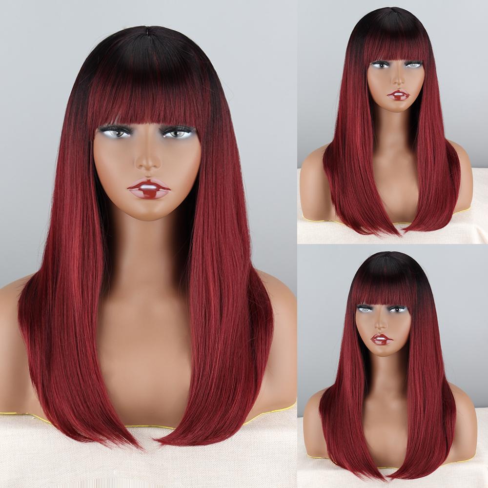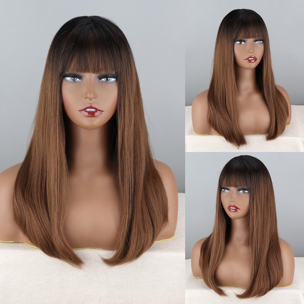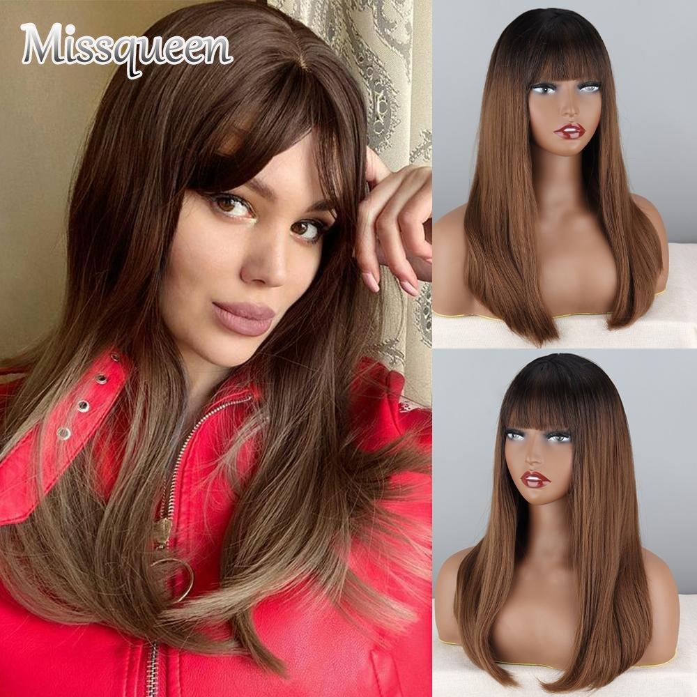 MISSQUEEN Женский длинный прямой коричневый парик с челкой, натуральный омбре, прямой повседневный коричневый парик из синтетического волокна