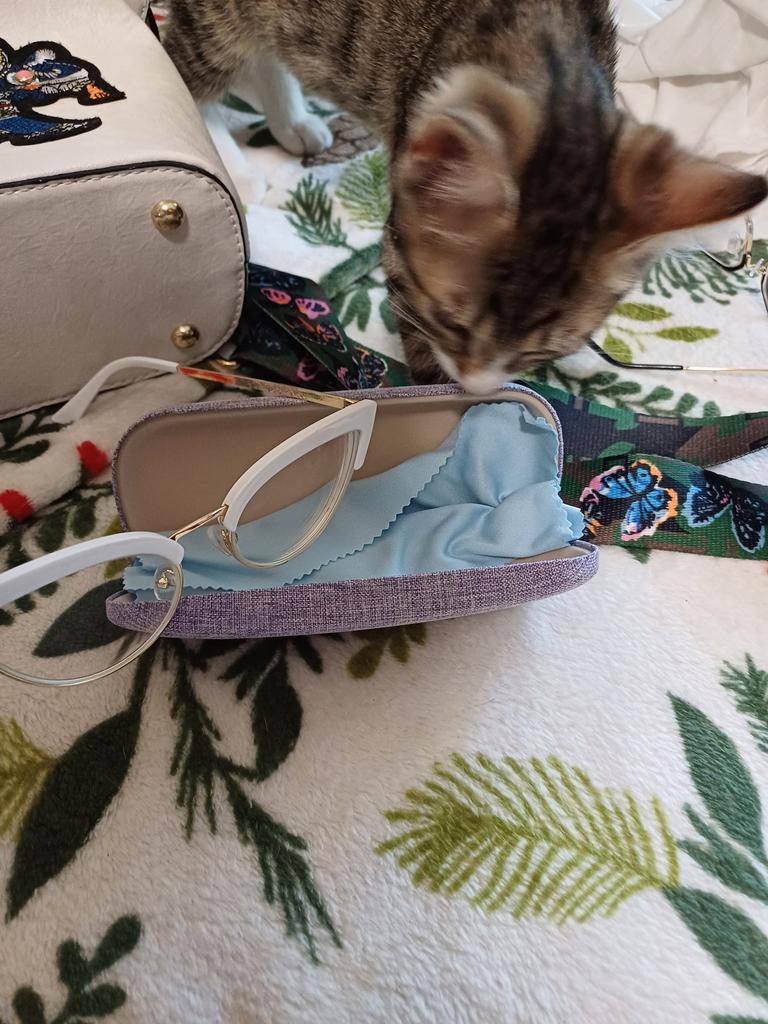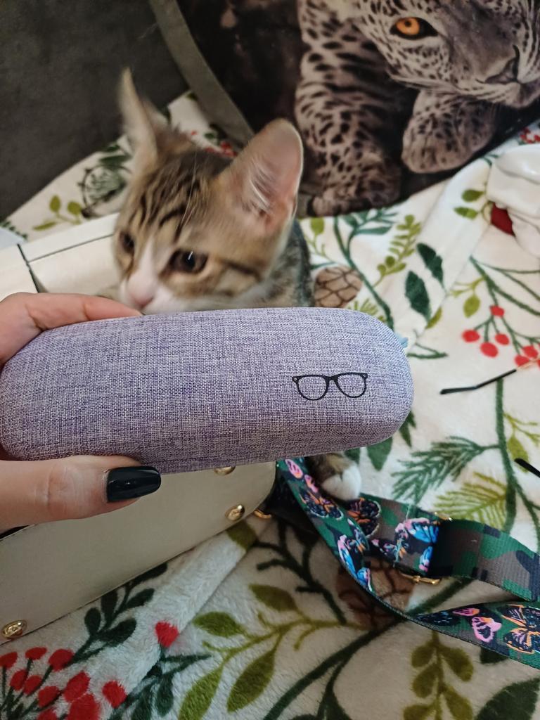Какая я довольная, какая я счастливая! И очки красивые, и диоптрии подошли идеально. Не знаю до сих пор,почему так было с теми очками! А посмотрите:какая упаковка! Даже кошечка оценила!Спасибо огромное!