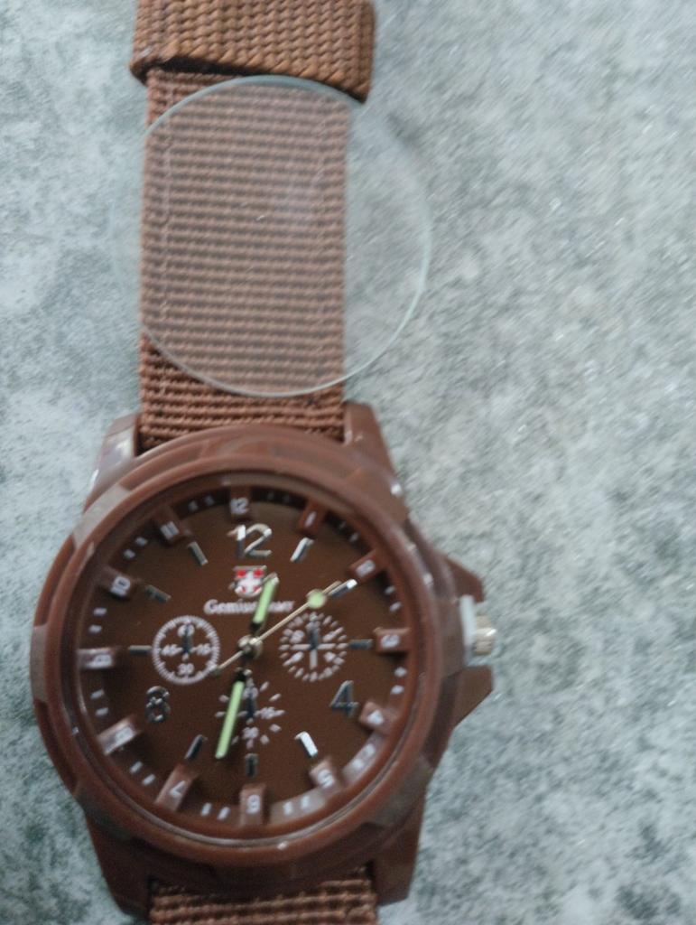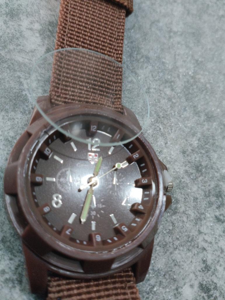 Стекло отдельно от часов. Мне уже надоело доказывать , что это брак. Больше я не буду покупать ничего, что может прийти сломанное. Стекло сам не склеешь.