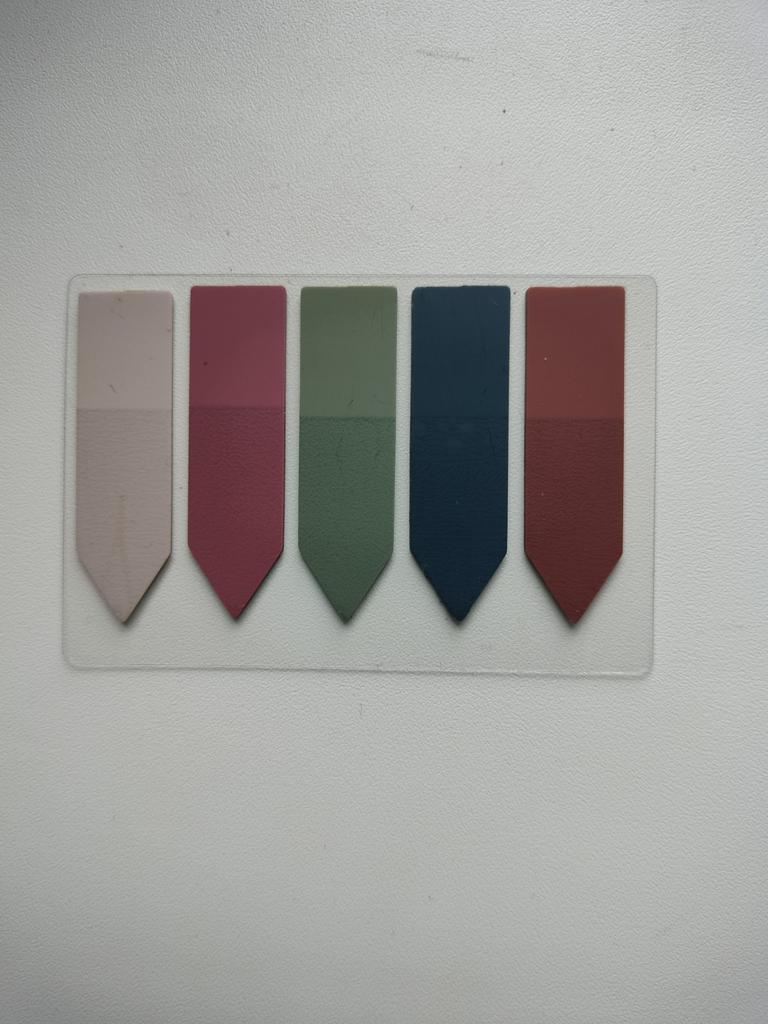 Заказ шел долго — 1,5 месяца. На первый взгляд очень понравились закладки: ровно вырезаны, хорошо клеются, примерно одинаковы в высоту, на основе пластик, не помят. Но чем разочаровали чуть позже, так это цветом. На изображении были яркие цвета. В реальности же они тусклые и темные, при этом даже сами цвета расставлены на основе в совершенно другом порядке. Использовать их, конечно, буду, они практичны и хороши. Но с эстетической точки зрения немного подвели. Заказом не очень довольна, но рекомендую.