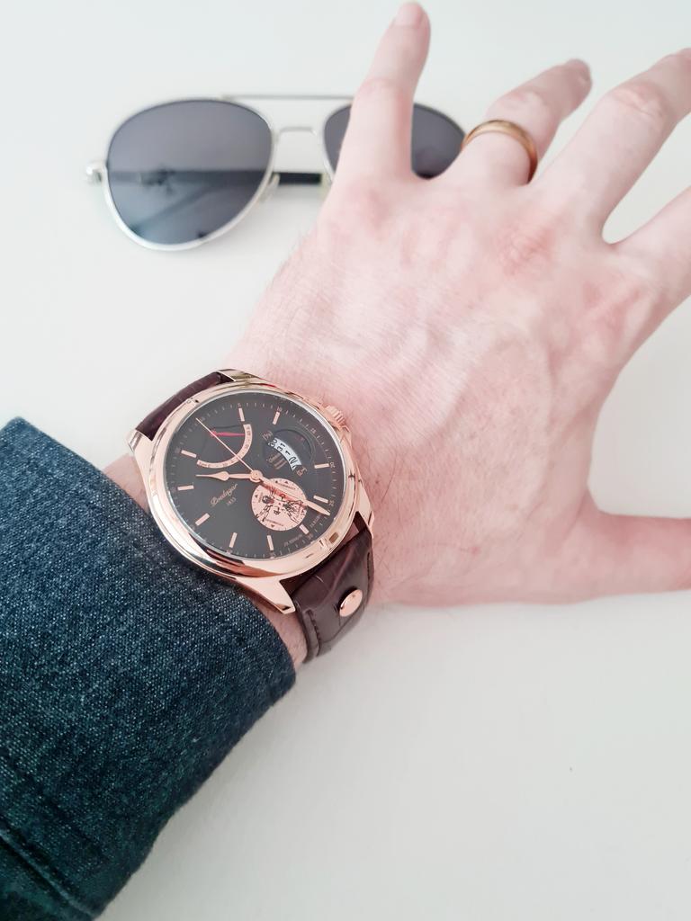 Стильные мужские часы от #POEDAGAR 👌Продолжаю пополнять свою небольшую коллекцию аксессуаров на нашем любимом сайте🙂, и эта модель сразу привлекла моё внимание! Небольшие, аккуратные, без лишних украшательств, но с какой то своей особенной изюминкой, всё, как мне нравится 😊 Благодаря своему почти классическому дизайну аксессуар прекрасно дополнит любой образ, будь то повседневная одежда, вечерний или деловой костюм 👌 Исполнение назову безупречным, часы выполнены предельно аккуратно, все элементы точно подогнаны и тщательно отполированы, ни одного, даже самого мельчайшего дефекта я не заметил. Механизм трехстрелочный, кварцевый, очень тихий и точный, часы пришли с уже правильно установленным временем, только в другом часовом поясе. Циферблат оригинального исполнения, сверху симпатичный дополнительный, снизу рисунок Леонардо да Винчи, а справа имеется красивый логотип бренда. Часовые отметки времени здесь выполнены в виде черточек под золото, цифрами подписаны только секунды, также в наличии красиво оформленный календарь. Дополнительные циферблаты, к сожалению - муляжи, не несут никакого функционала. Корпус небольшой, 41 мм., самый удобный размер для наручных часов, не тяжёлый, задняя крышка из нержавеющей стали, имеется защита от влаги. Ремешок выполнен из ПУ с тиснением под рептилию, с одной стороны возле корпуса украшен заклепкой. Не на очень крупную руку, у меня осталось снаружи лишь пару отверстий, когда надел часы. Пряжка из нержавеющей стали. Приходят в Варшаву, Польша, за две недели, забрал посылку в почтовом отделении. Упаковка - фирменная картонная коробка и зип пакет. Задняя крышка была оклеена защитной плёнкой. В магазине можно выбрать сочетание цвета корпуса и ремешка из семи различных вариантов, мне больше всего понравился под золото. Заказ оставил только самые приятные впечатления, однозначно, буду носить эти часы и с удовольствием могу рекомендовать к приобретению всем вам! #часы #аксессуары #watch