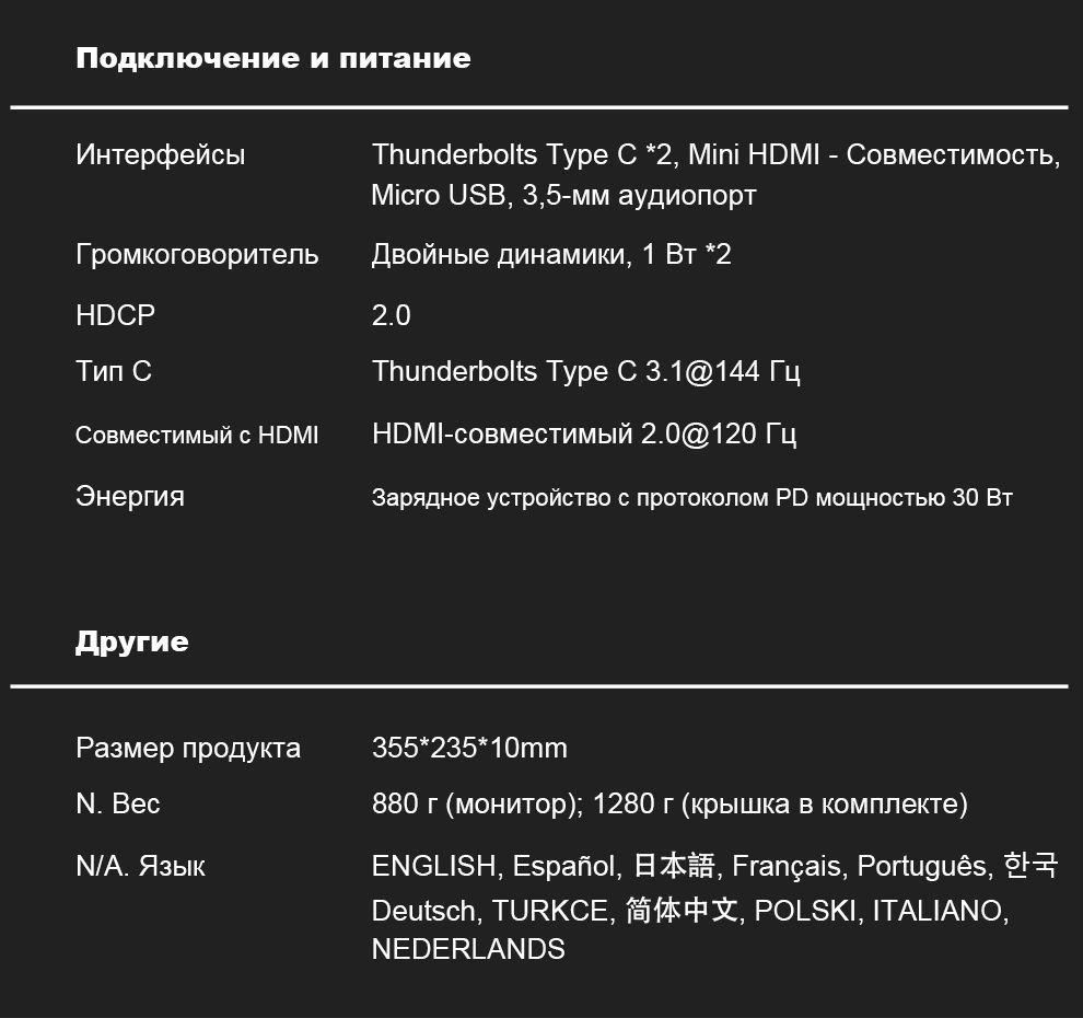 Thunderbolts Тип C 3.1 Версия: 144 Гц (зависит от модели видеокарты ноутбука, только маленькие модели ноутбуков могут поддерживать 144 Гц, пожалуйста, свяжитесь с нами перед покупкой. И 144 Гц зависит от запаса, свяжитесь с нами перед покупкой или оставьте сообщение на странице заказа. Спасибо.)