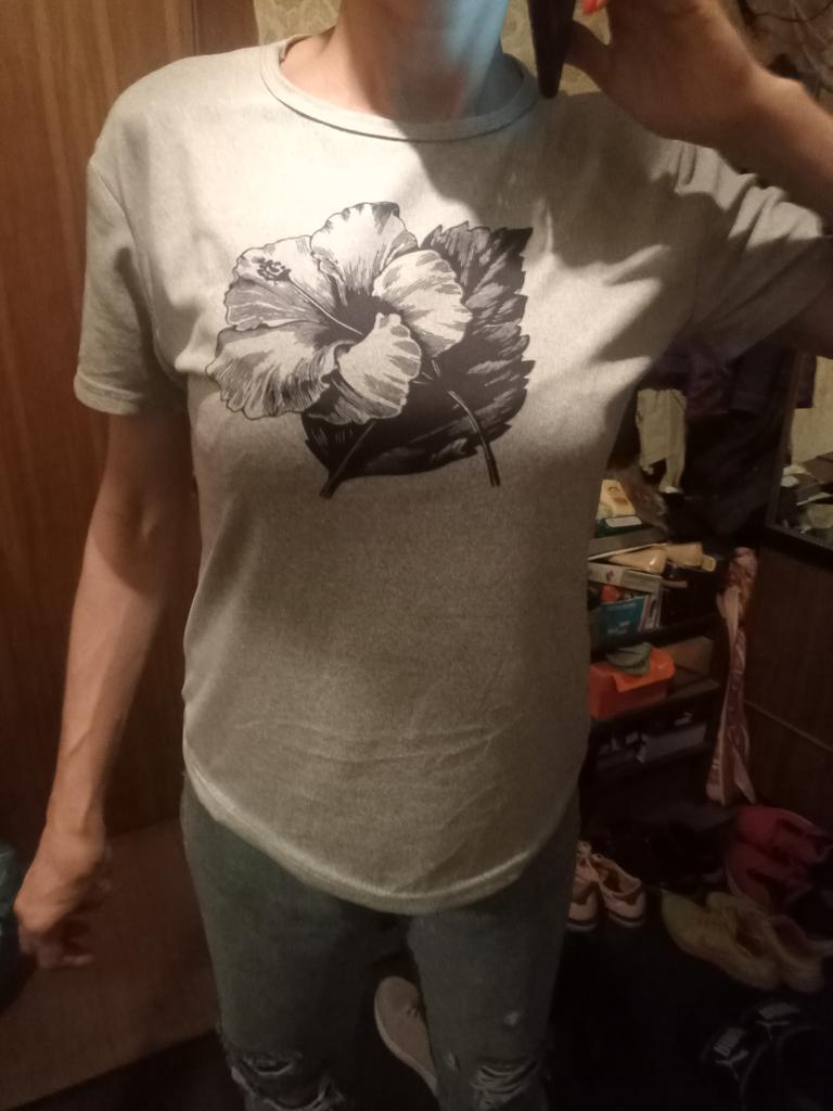Футболка короткая, нужно брать на размер больше.