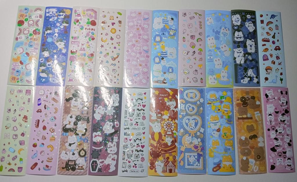 Милые наклейки, пришли 5 пачек по 20 листиков, ровно 100 штук, очень довольна! Очень красивые наклеечки, обязательно буду заказывать ещё! ♡