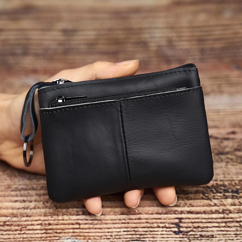 Мини-портмоне из натуральной кожи, маленький кошелек для мужчин и женщин, коричневый, винтажный, Повседневный, маленькая сумка для кредитных карт, карман на молнии, сумка для ключей NASVA