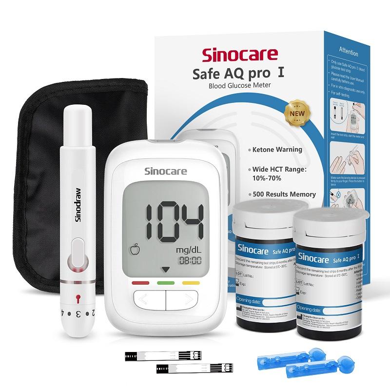 🎁 Безопасный набор для тестирования уровня глюкозы в крови AQ Pro I: Этот комплект включает в себя- Sinocare Safe AQ Pro I монитор сахара в крови и тест-полоски для определения уровня глюкозы в крови и устройства Lancing & Painfree lancing ручка & PU сумка для переноски и руководство пользователя. Комплект оборудования для удовлетворения всех ваших потребностей при измерении уровня глюкозы в крови.