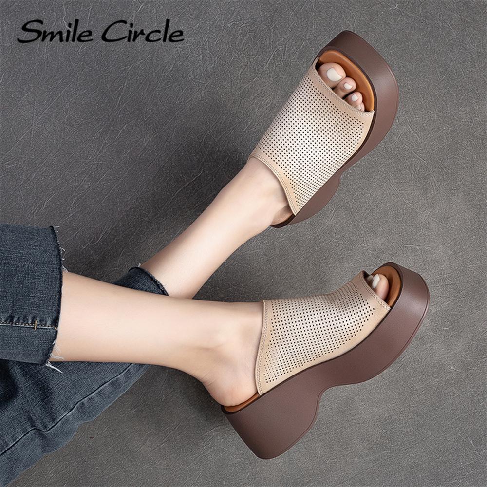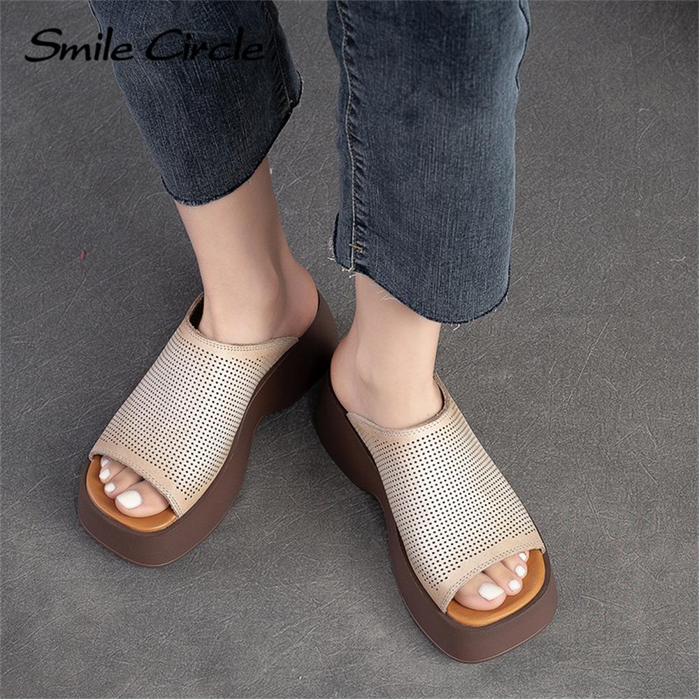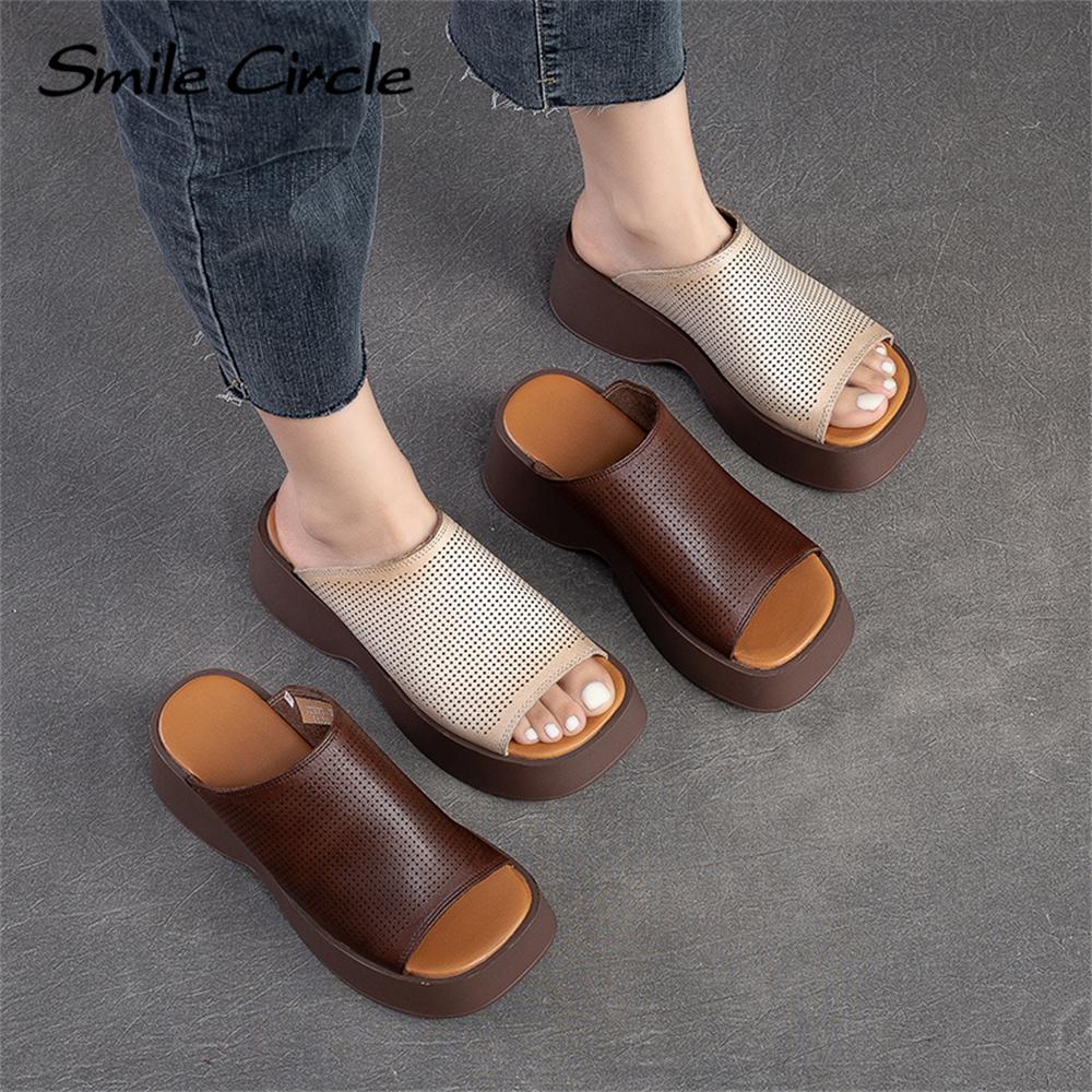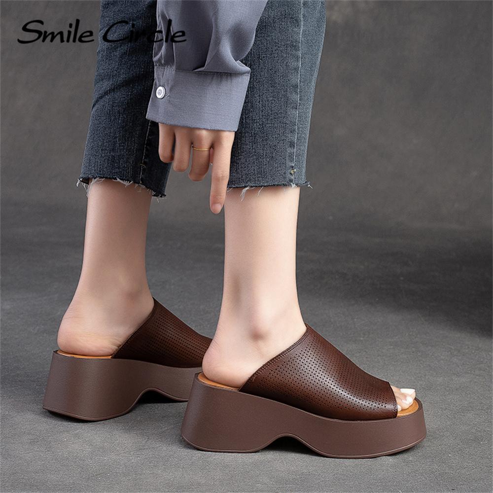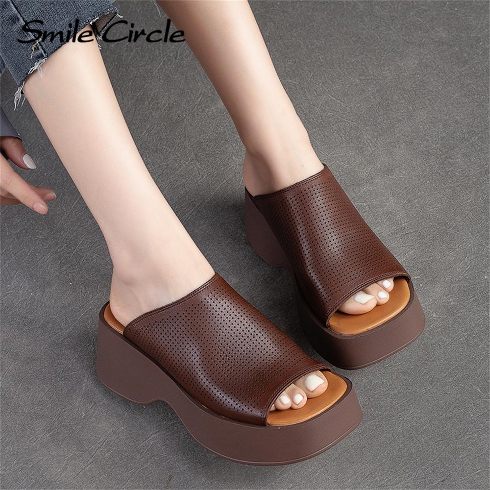 Женские сандалии на массивном каблуке из натуральной кожи, повседневная обувь на толстом каблуке с круглым носком, модная обувь на толстой подошве в стиле ретро