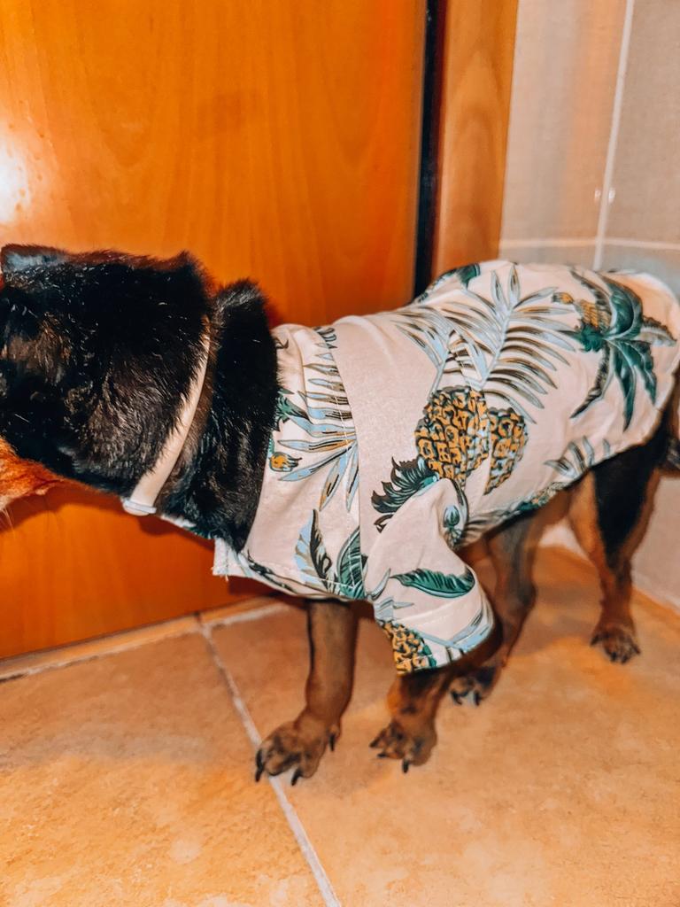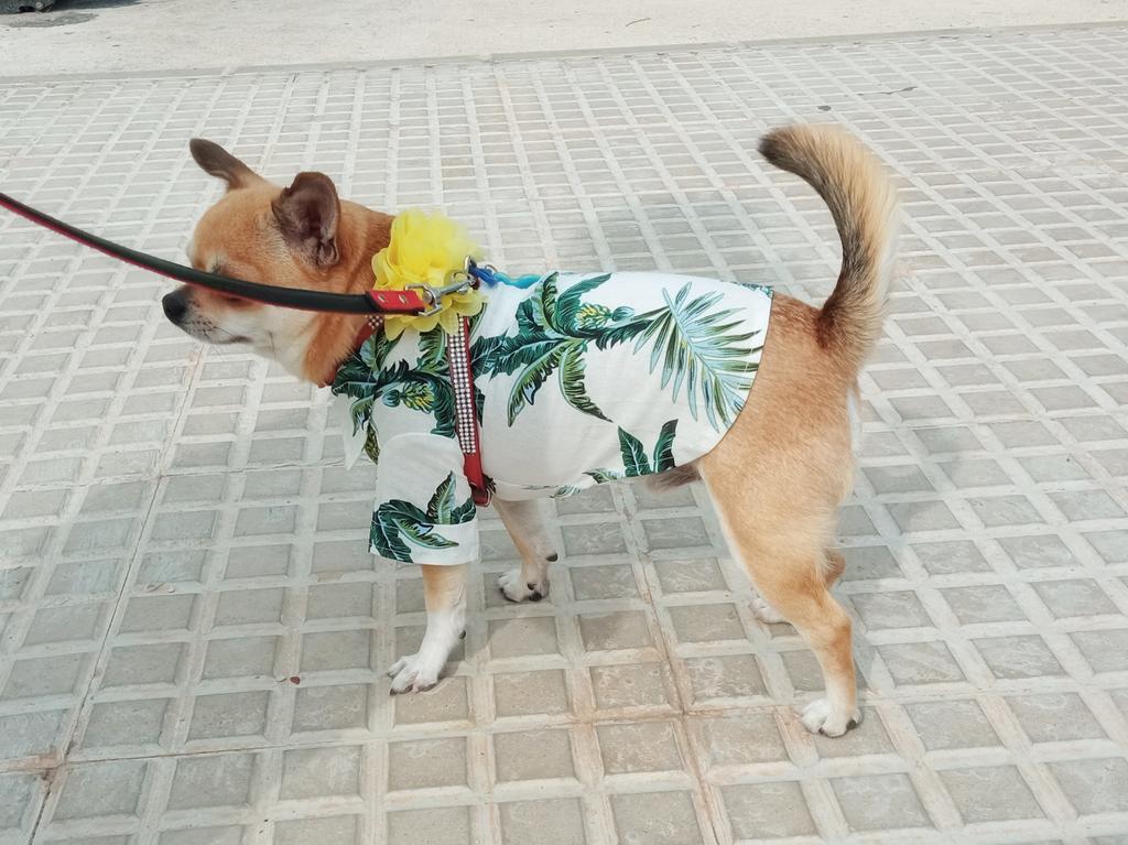 Гавайская рубашка на Лимончика 🐕 Яркая, с ананасиками и рисунками тропических растений. Заказала в размере М. Подошла идеально. У Лимона обхват грудочки 32,5 см. Вес 3 кг. Точные замеры изделия 🤗 Обхват груди 39 см Длина по спинке без воротничка 26,2 см По пузику длина 20 см. На спинке складочка, которая делает рубашку похожей на платьице. Сын так и спросил "Ты что Лимону платье заказала?!" 😁 Ну а Лимону рубашка очень понравилась. Он ее с удовольствием надел и снимать не хотел. Пока не показала, что у меня для него ещё кое-что есть ☺️ Любит он красивые одежки. Рубашка одевается очень легко. Она на трёх кнопках, которые застегиваются на пузике. Это очень удобно. Рубашка пошита хорошо и аккуратно. Ощущение, что ткань полностью натуральная, что это 100 %й хлопок, но на бирке указано - полиэстер. Никакого постороннего запаха. Уверенно рекомендую. Хорошая качественная вещь. Доставка быстрая. Друзья, мой Telegram-канал 👇🏻 𝑰𝒓𝒊𝒔𝒌𝒂𝒋𝒐𝒐𝒎 Присоединяйтесь обязательно ☺️