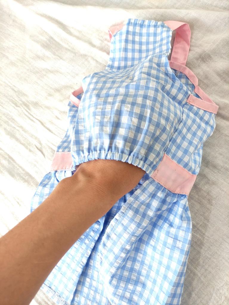 🐶 РОЗОВО-СИНИЙ ЛЕТНИЙ САРАФАНЧИК ИЗ НАТУРАЛЬНОГО ХЛОПКА, ДЛЯ СОБАЧКИ 💯👍 🙋♂️ Заказал вот такую милую модель сарафанчика, но в сине-розовой расцветке. Собака моей подруги была в полном восторге. Смотрится вещь восхитительно! Такой сарафан подойдёт на любую маленькую собаку. Его размер я определил визуально, в соответствии с параметрами Молли, собаки известной породы джек-рассел-терьер. Доставка 27 дней, трек полностью отслеживался. Упаковано аккуратно! 🐕 Собака осталась очень довольна, её владелица тоже не ожидала такого подарка. А для меня было большим удовольствием купить для них обеих этот сарафанчик. Параметры Молли, собаки 8,5 кг весом: обхват груди 40 см, шеи 27 см. По размерной сетке продавца вроде как должен был подойти размер L, но так как вся одежда из Китая маломерит, взял XL, и не прогадал! 💁♂️ Вещь идеально подошла Молли, размер точно её. Качество порадовало - швы ровные, нитки нигде не торчат. Цвета нежные, пастельные, рисунок ткани красивый. Понравился дизайн, есть и декоративная розовая надпись BABY на спинке, контрастные вставки на поясе и розовые лямки. Пуговицы для лямок удобные, застёгиваются легко. Есть вшитый полукруг для поводка. 🕵️♂️ На талии ткань присборена - за счёт этого юбочка выглядит более воздушной и пышной. Отдельное спасибо за подарок - силиконовую курочку для зубов. В целом такое летнее платье - это просто отличная, прекрасная, хорошо продуманная одежда для собачки. Рекомендую всем желающим. Хорошего дня и отличного настроения, дорогие друзья!