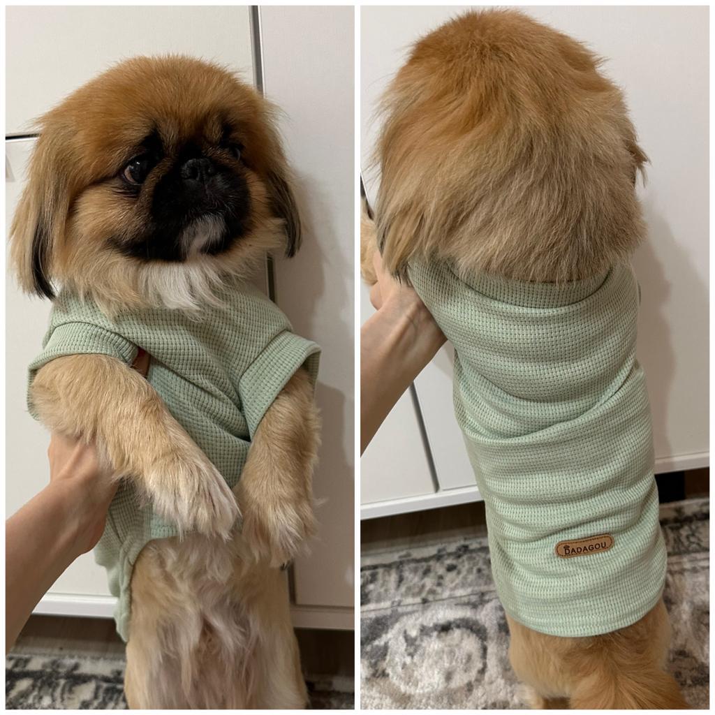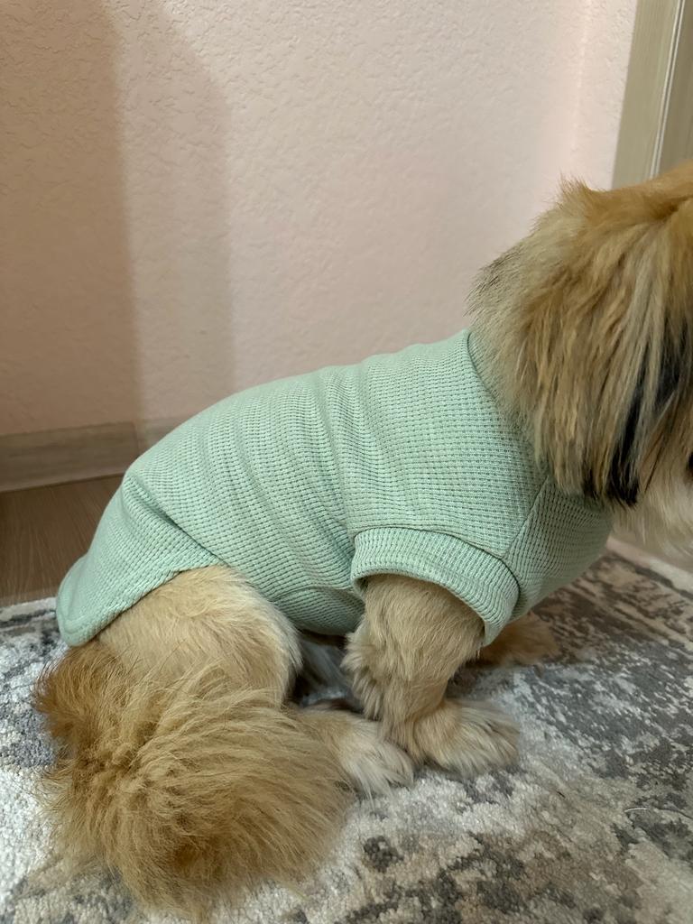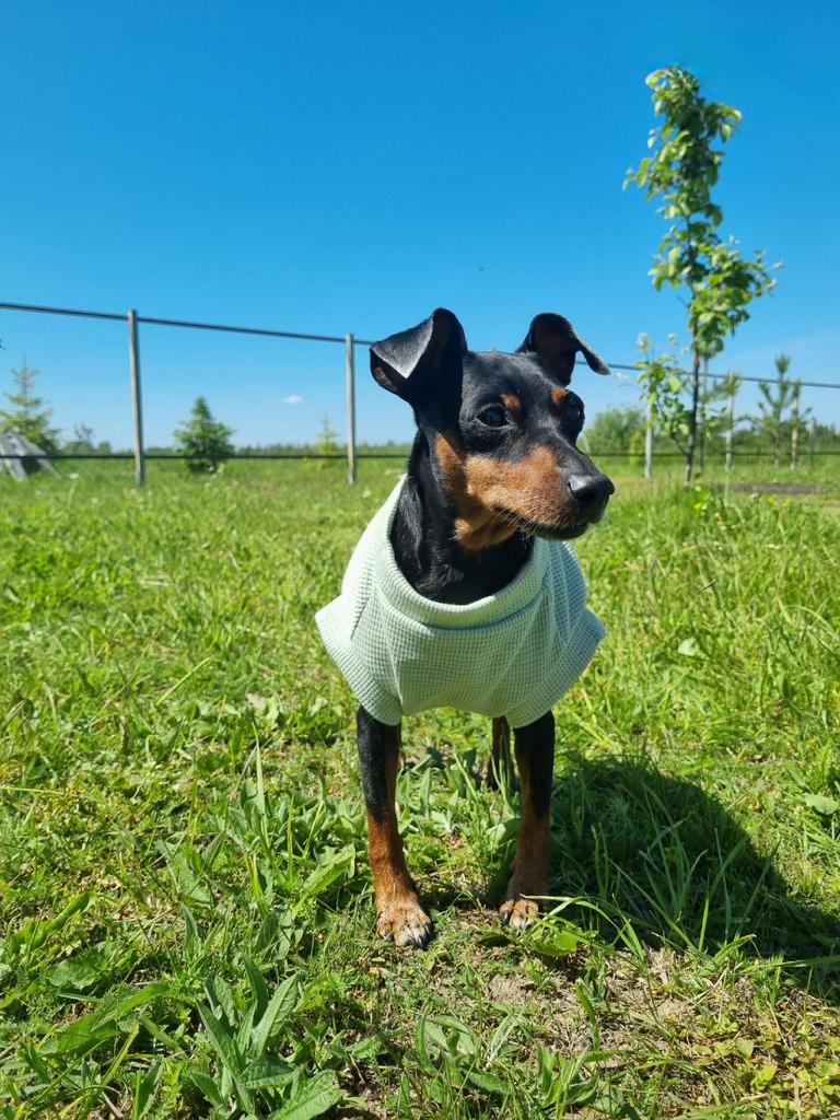 Легкая толстовка для собаки из мягкой ткани с вафельной структурой без молний и кнопок. Приятная мягкая ткань обеспечит тепло в прохладную погоду, защитит вашего питомца от солнца, от пыли дорог и бурных игр с друзьями. Я люблю одевать такие светлые одежки на собаку в период активности клещей - на светлой ткани сразу видно их. В сезон снимаем по 10 штук с нашей меленькой собачки. Одежда облегчает поиск паразитов. Ткань - полиэстер. Пошив аккуратный. На стандартного цвергпинчера 6 кг, заказала размер XL - оказался велик в длину и ширину. На нашу длину крупа 28 см и крепкий форбруст идеально бы подошёл размер L. Размерная таблица продавца верная, а ткань не много тянется в ширину, учитываете это. Замеры одежки на видео. Ушью и будем носить. Доставка около месяца. В подарок - игрушка катапульта. Рекомендую! В таком модном свитшоте ваш хвостик будет неотразим на любой собачьей тусовке!