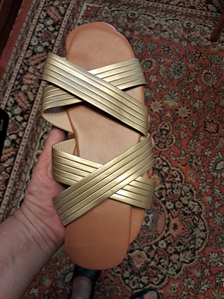 Выглядят не совсем так, как на фото. Я бы такие не взяла. Надеялась, что приобрету легкие красивые шлепанцы на лето. А эти годятся тольпо на даче по грядкам ходить, просто лапти. Сравниваю по фото с другими покупателями, у них товар пришел как на фото. Почему у меня такое? Служба поддержки вернула стоимость полностью.