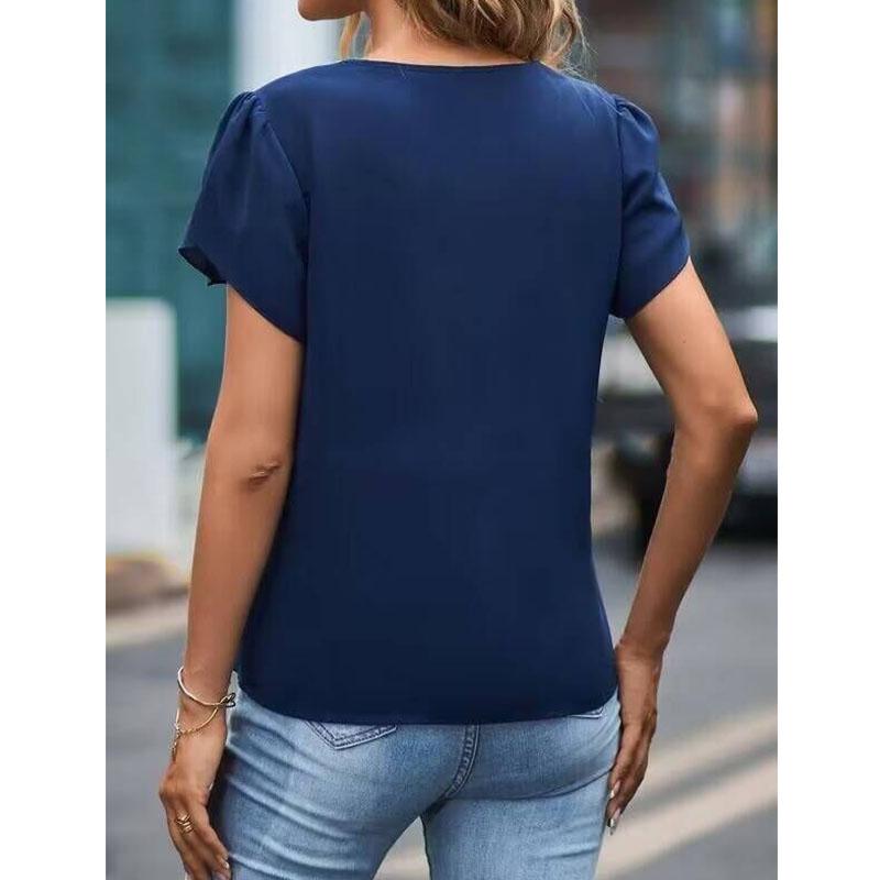 Летняя женская футболка с золотым кружевом и v-образным вырезом с рукавами-лепестками, однотонная футболка, топы