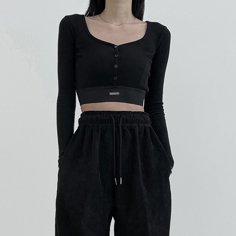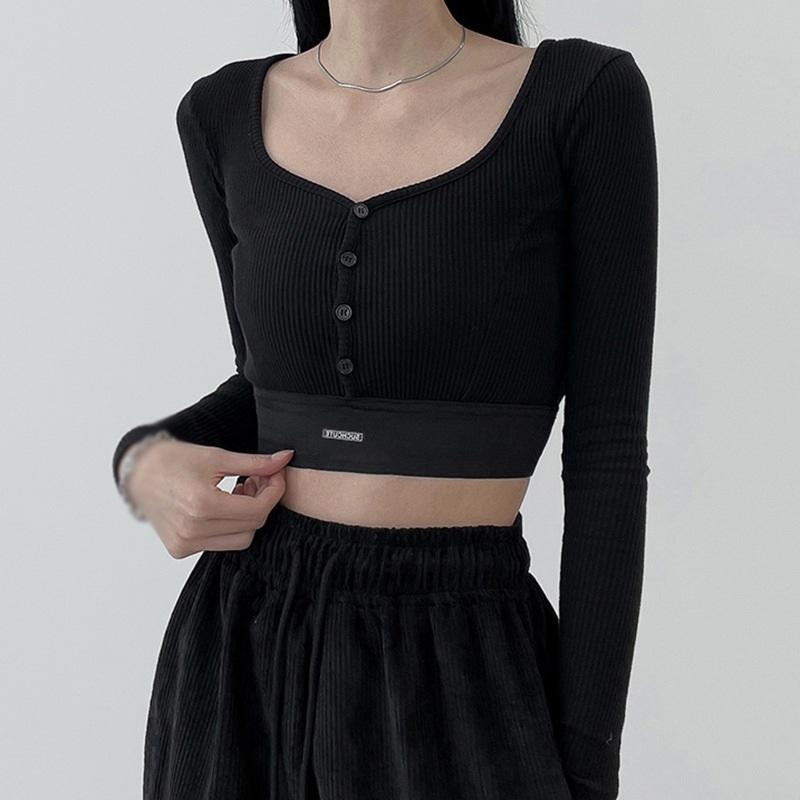 Характеристики: спортивная, сексуальная, с квадратным вырезом, на пуговицах, с загнутой талией, тонкая, короткая, с длинным рукавом футболка