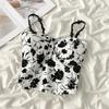 Женские топы без рукавов с цветочным принтом, милый тонкий эластичный топ без рукавов