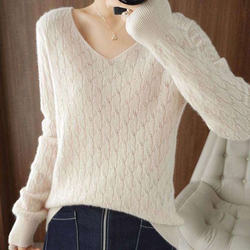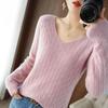 Свободный однотонный вязаный свитер с v-образным вырезом, женский тонкий весенне-осенний ажурный низ с длинными рукавами, модная верхняя одежда, топ — купить товар онлайн с бесплатной доставкой по всему миру!