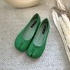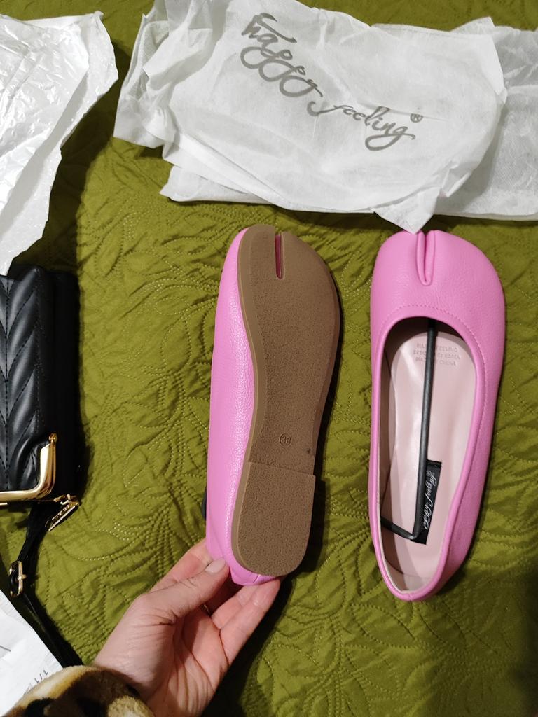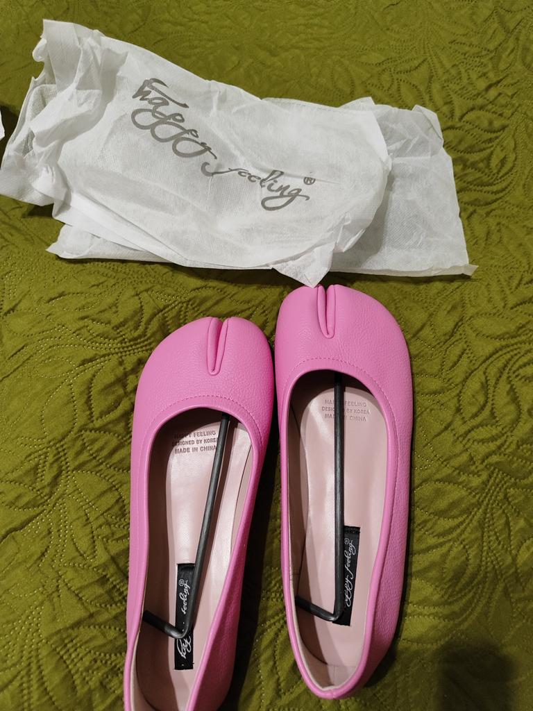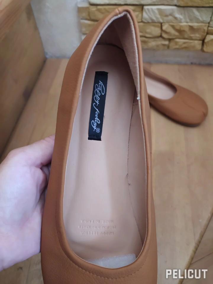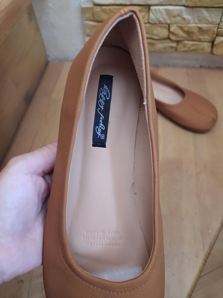 Отвратительное качество товара!!!!!!!. Это дешевая подделка из клеенки с оргалитовой подошвой, на подъем ноги примерно 16 см. У нормальных людей при длине стопы 24,5 см такого не бывает. Просунуть ногу невозможно. Внутренняя стелька отсутствует, никаких ярлычков, как на рекламном фото внутри обуви нет. Подошва абсолютно плоская, без " подушечки", как на фото, прорезь межпалечная очень узкая. При сгибе балеток эффекта "раскрытого пальца" - нет. С середины марта месяца продают откровенную халтуру, которая не соответствует ни рекламному фото, ни фото покупателей, которые получили первую качественную рекламную партию . Типично китайская подлая манера. ПРОДАВЦА НЕ РЕКОМЕНДУЮ!!!!!