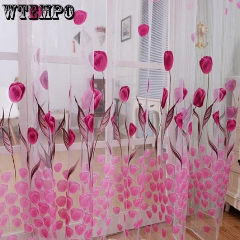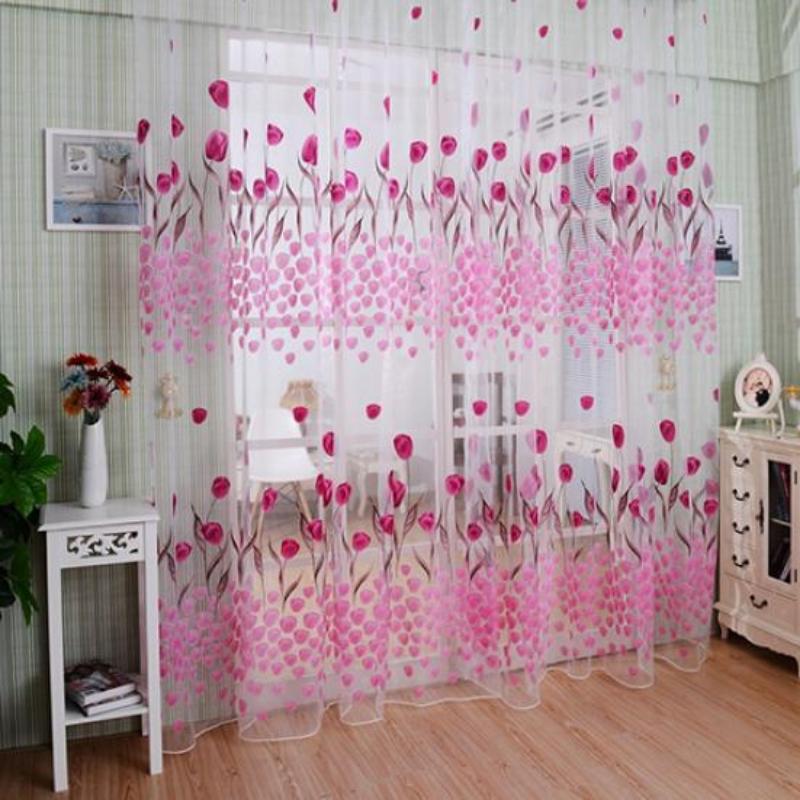 Романтические тюлевые шторы с принтом тюльпанов, занавески, перегородки, дверные оконные шторы, занавески для окон гостиной