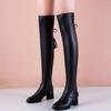 Зимние плюшевые женские сапоги. Длинные женские сапоги. Мягкие кожаные эластичные сапоги. Тонкие и высокие кожаные сапоги с острым носком. Модные сапоги до колена.