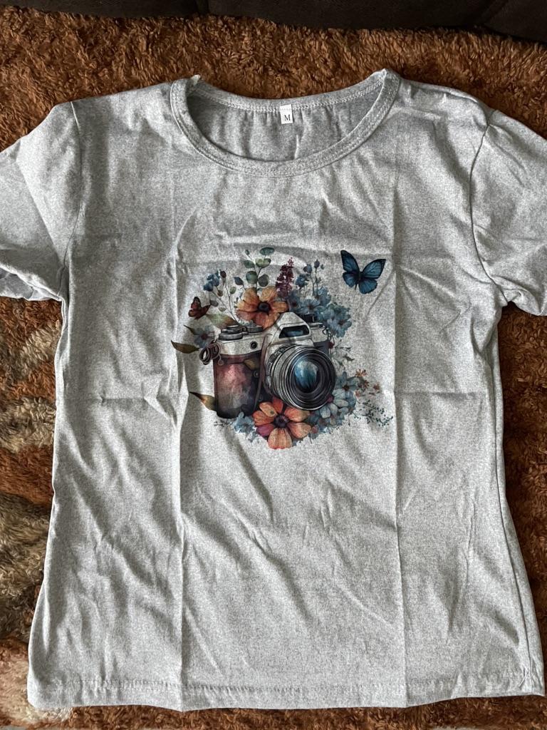 (Азиатский размер)Футболка модная женская футболка с камерой и бабочкой, милая женская одежда с принтом 90-х годов, женская графическая одежда, повседневная футболка с коротким рукавом