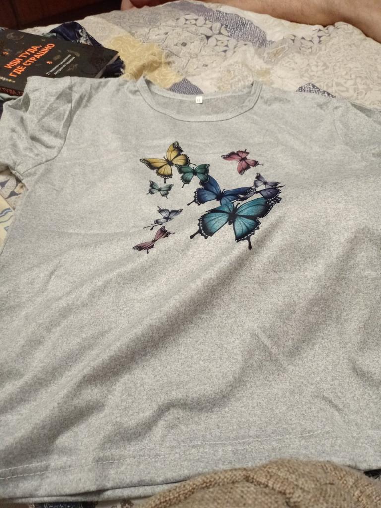Милая футболка , синтетика, но мягкая и приятная на ощупь.