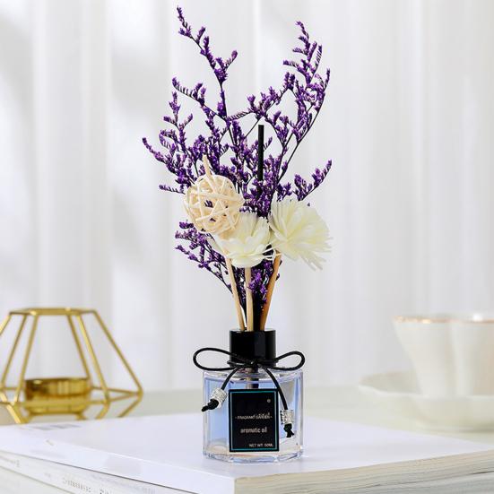 Бутылочка для аромадиффузора 50 мл с декоративными палочками и цветами для длительного аромата