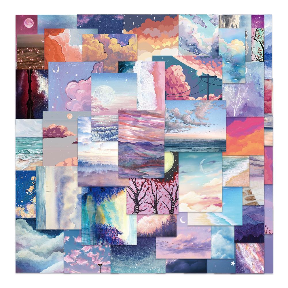 Украсьте 50 наклейками с пейзажной масляной живописью в стиле INS - водонепроницаемыми для багажа, ноутбука, записной книжки