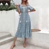 Летняя женская одежда в европейском и американском этническом стиле, платье среднего размера с принтом, повседневные платья