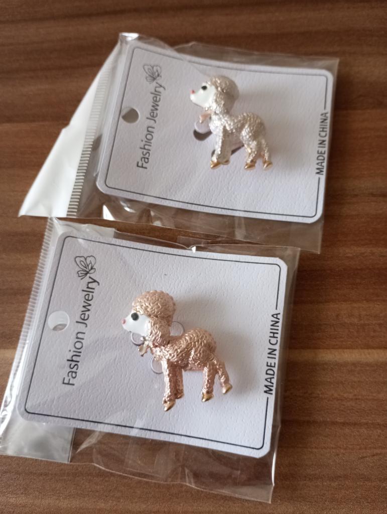 Маленькая, миниатюрная, красивая брошечка в виде ягнёнка 😍😍😍. Заказала две штуки, белая и розовая. У продавца представлена в трёх цветах, чёрная ещё. Изготовлены качественно. Из прочного материала, тонкое железо, медь может, но в руке не чувствуется, лёгкие. Прорисованы чётко, детали видны отчётливо. Глазки в виде чёрных бусинок. На шее бантик с камешками. Мне понравились. Может подарю кому-нибудь. Доехали без повреждений. Продавец положил обе брошки в один пакет. Я довольна, спасибо🙏💕
