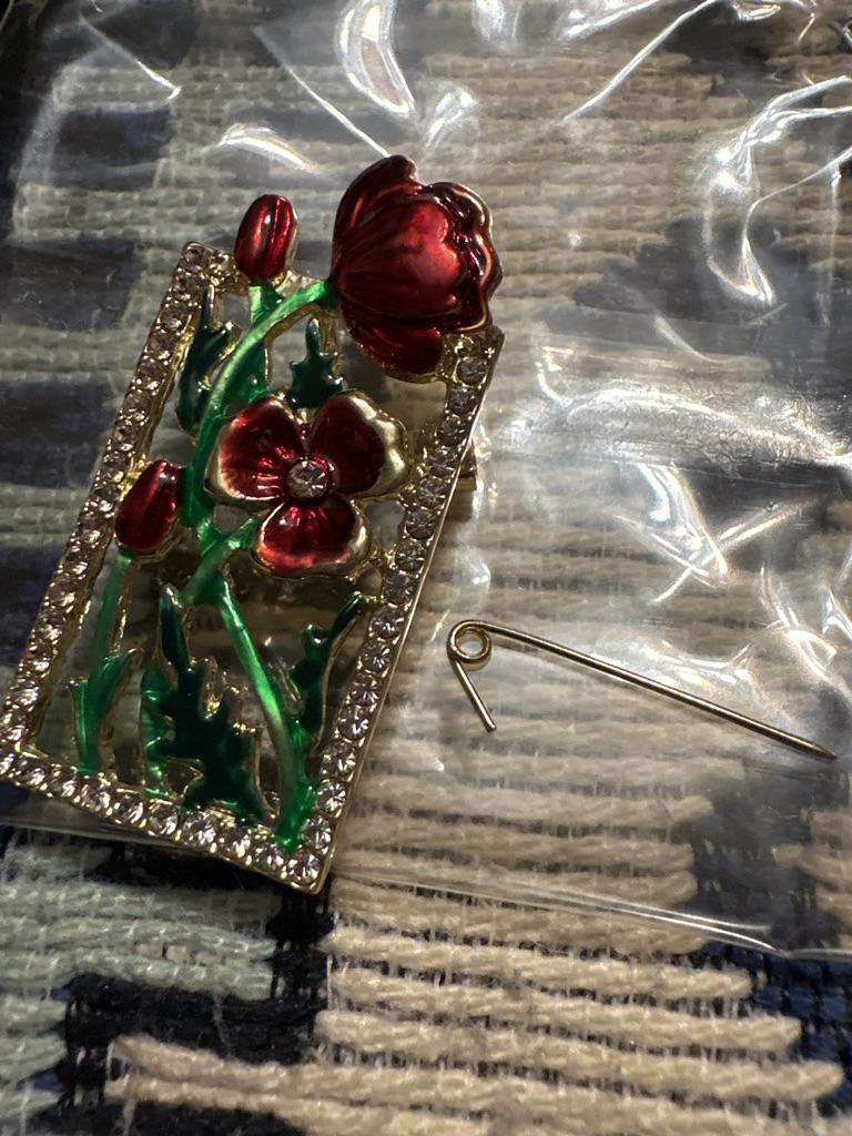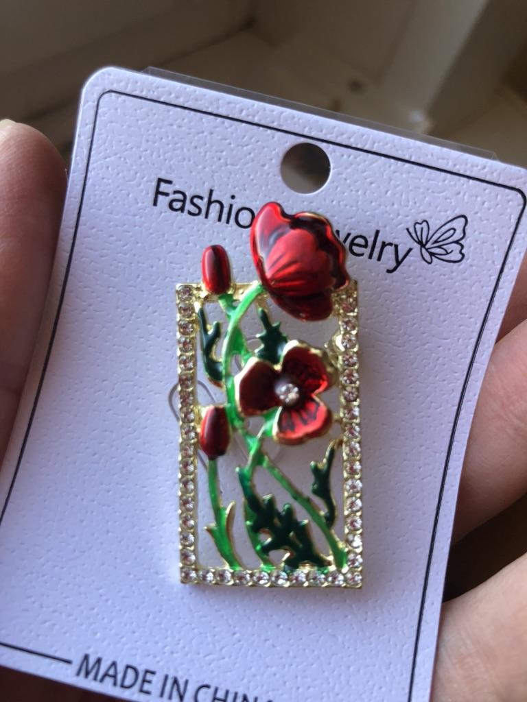 Брошь изумительная! Очень красивая и необычная по дизайну! Я в восторге! Спасибо! Конечно же рекомендую! Самая красивая брошь из мною приобретённых! Такое панно с яркими красными цветами. По периметру стразики сверкают Очень меня порадовала эта покупка. Благодарю за быструю доставку!