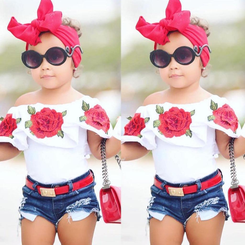 Одежда для маленьких девочек, топы с цветком розы, джинсовые шорты, брюки, комплект одежды — купить товар онлайн с бесплатной доставкой по всему миру!