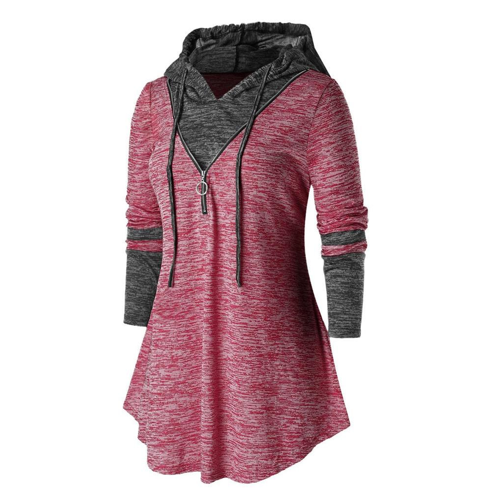 Женщины Повседневный плюс размер Пространство окрашивание Длинный рукав Капюшон Туника Топы Футболка Блузка Особенности: