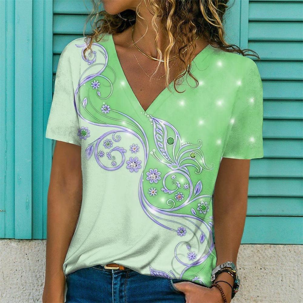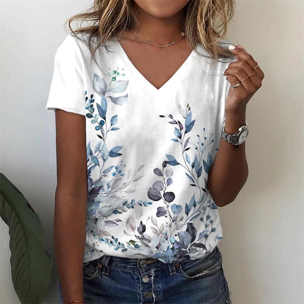 Новая летняя женская футболка с цветочным принтом и v-образным вырезом, сексуальный топ с коротким рукавом, модная футболка с принтом, футболка в стиле Харадзюку, женские размеры больших размеров 6xl
