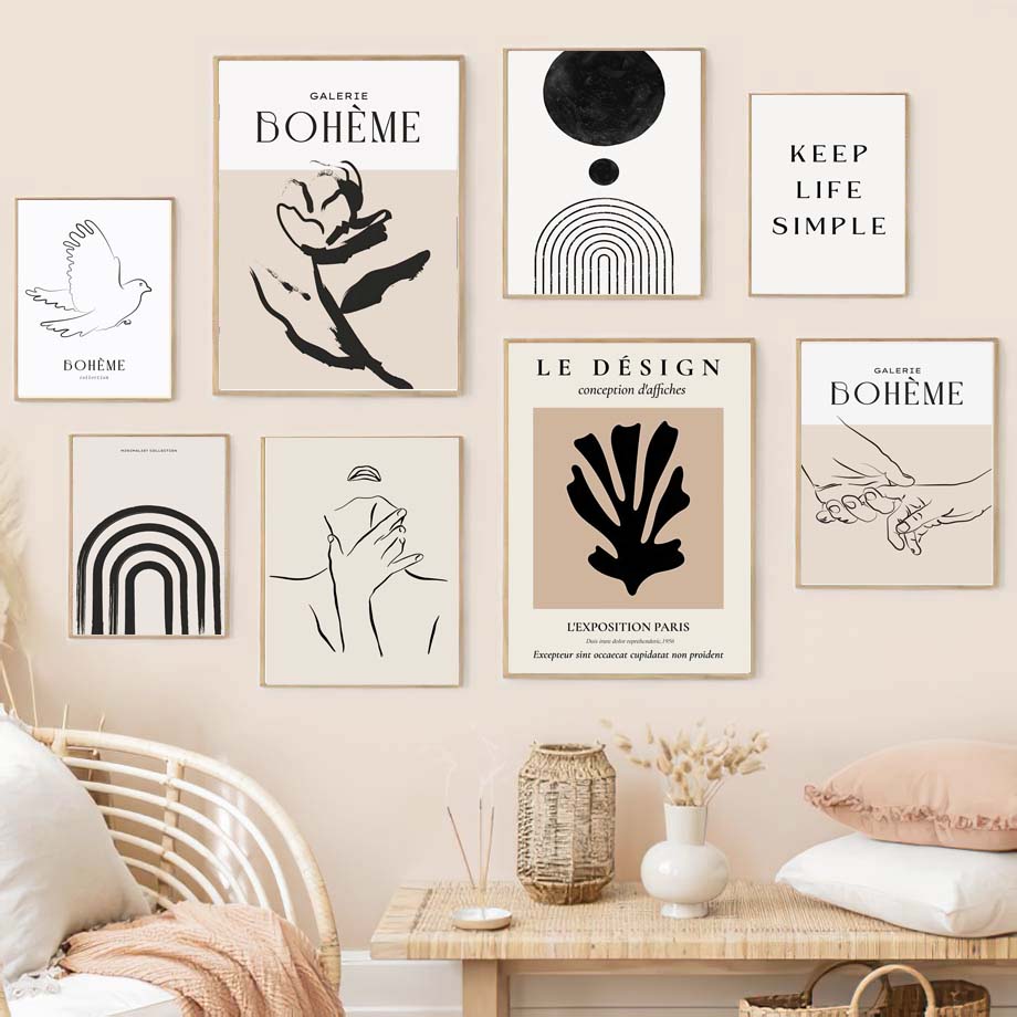 Цветок, лист, девушка, ручная геометрия, абстрактные черные, бежевые постеры и принты, настенная живопись на холсте, картины для декора гостиной — купить товар онлайн с бесплатной доставкой по всему миру!