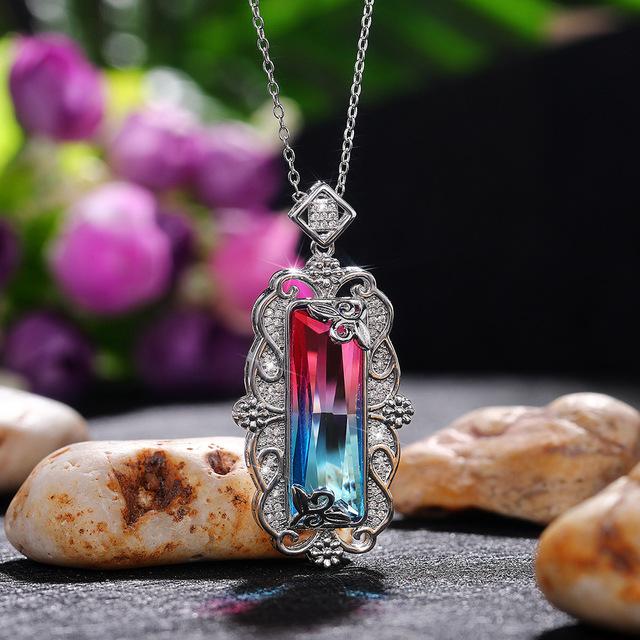 Новый кулон в винтажном дворцовом стиле, цветной кулон с драгоценным камнем, роскошное ожерелье с цирконом