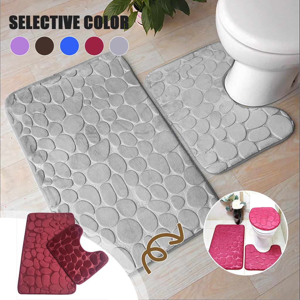 Домашний комплект из 3 предметов с тиснением камня, сплошной цвет, пена с эффектом памяти, мягкий коврик для ванной комнаты, нескользящий, с резиновой подложкой