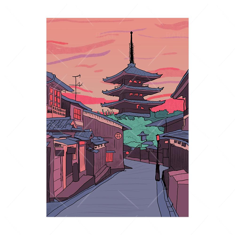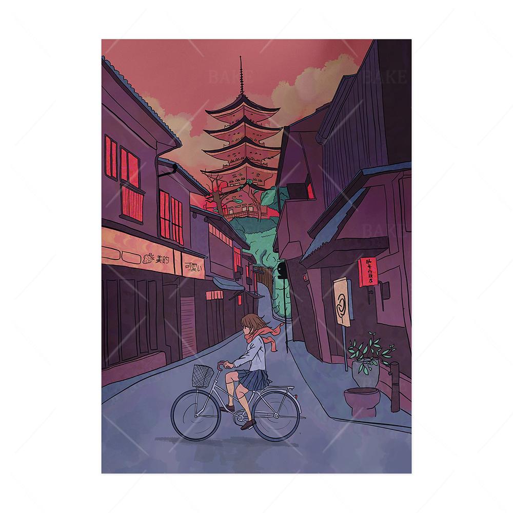 Плакаты с комиксами Киото, прогулка по городу, городские принты, мультяшный японский вид, уличный пейзаж, живопись, настенные художественные фотографии для декора гостиной