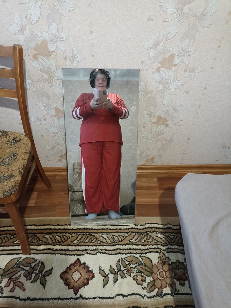 Костюм супер, в рукавах немного длиноват и штаны немного длиноваты, но наверное из за роста, у меня 1,62 м, это исправимо, штаны снизу на резинке.Взяла на размер 58-60, ОГ 126,ОБ 128, свободно не облигает. Материал хороший, не електризуется, приятный к телу.Рекомендую к покупке.