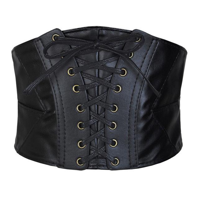 Корсет черные широкие ремни для женщин искусственная кожа панк пояс для похудения женские эластичные пояса с высокой талией